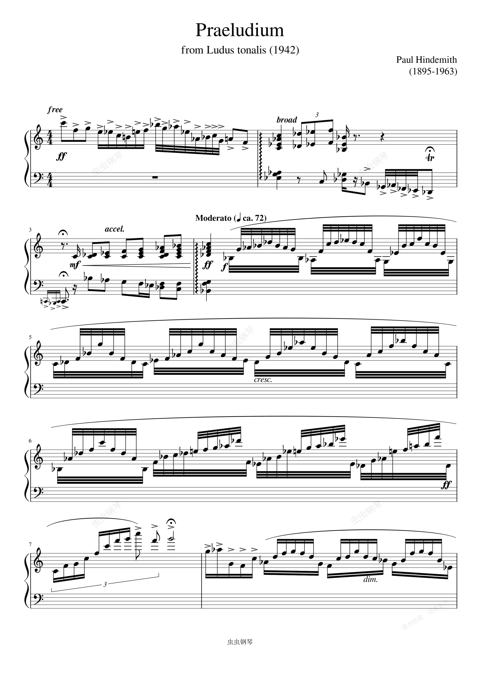 钢琴谱:Hindemith - Praeludium from Ludus Tonalis