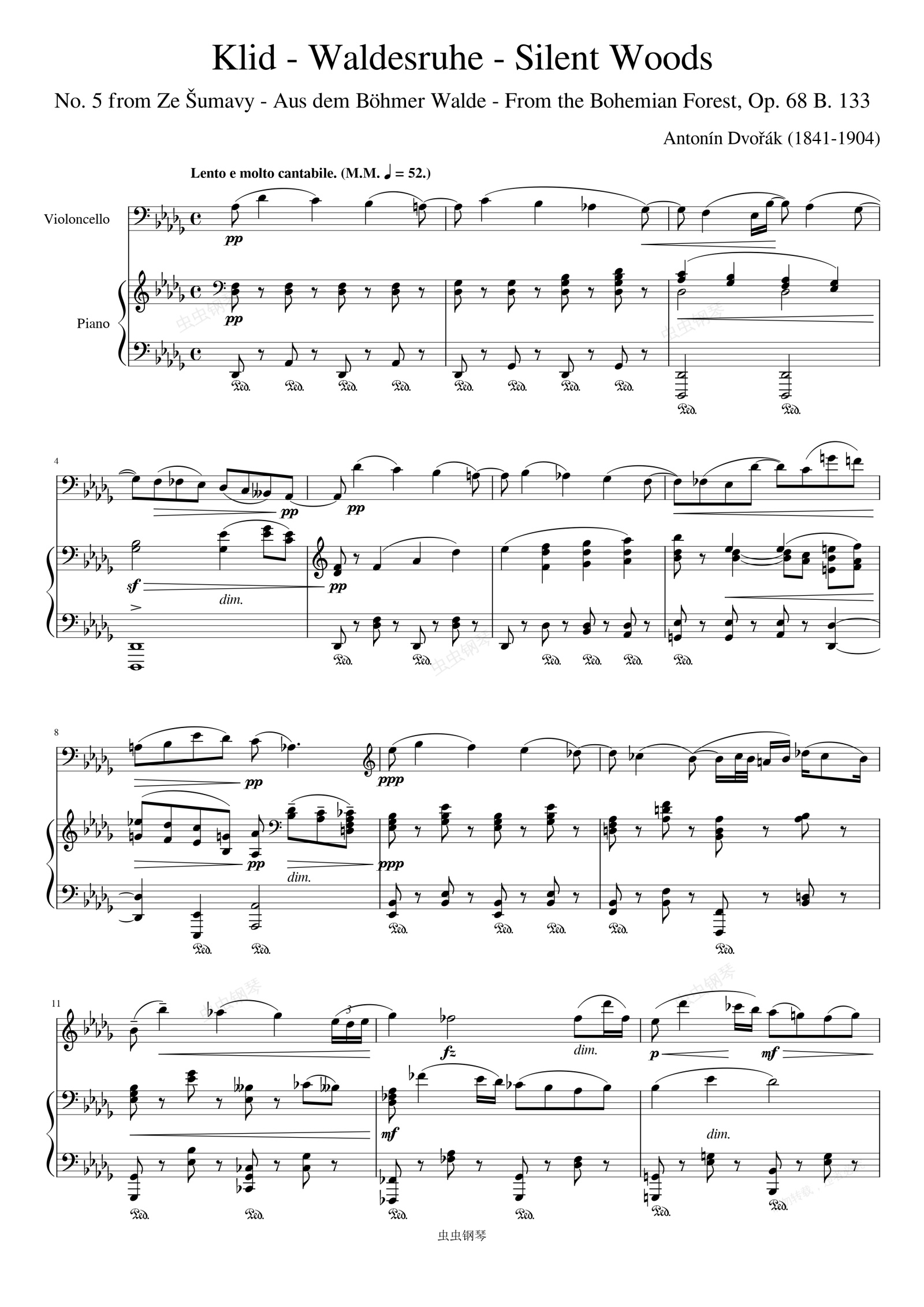 钢琴谱:Dvorak - Klid - Waldesruhe - Silent Woods