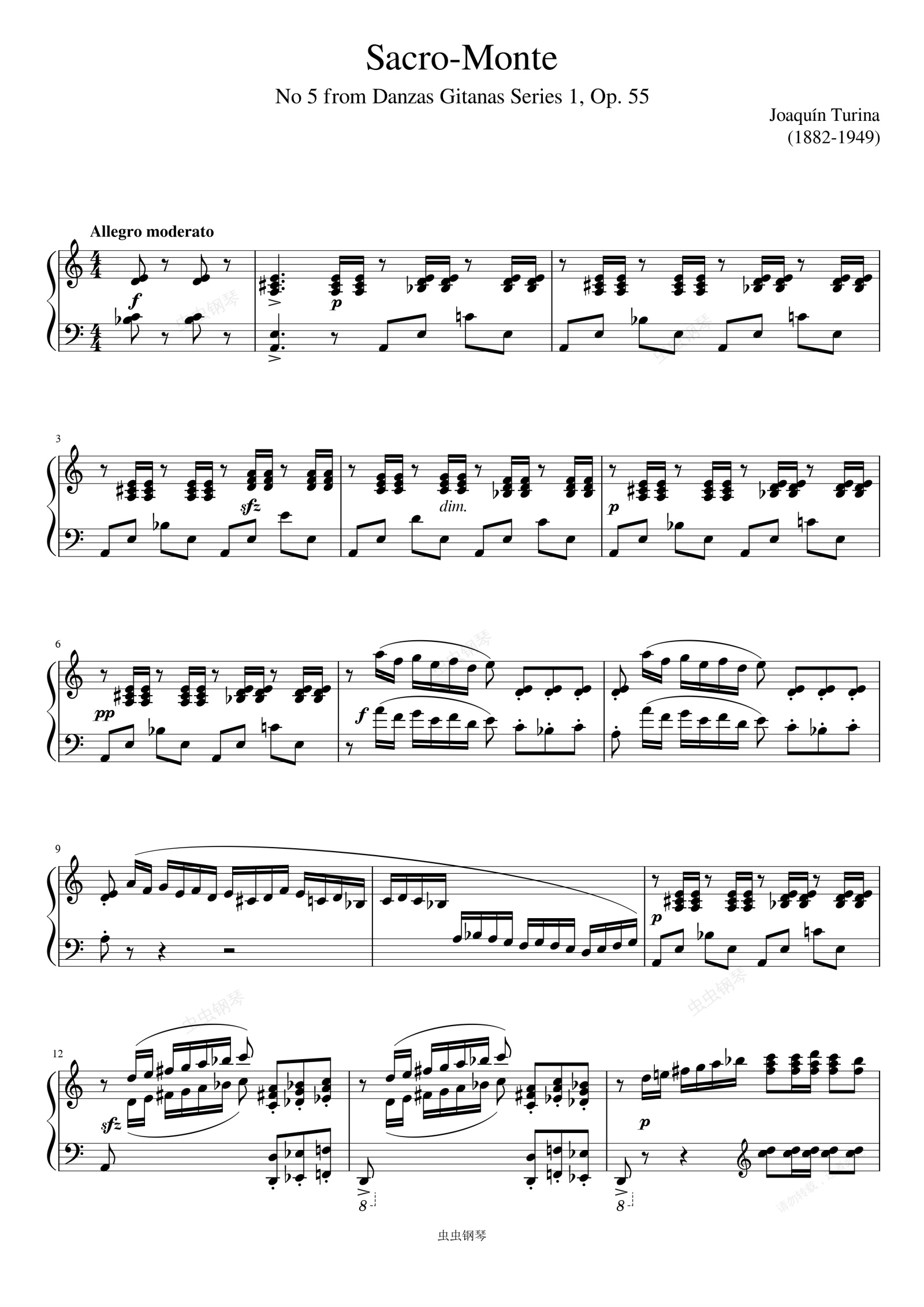 钢琴谱:Turina - Sacro-Monte - No 5 from Danzas Gitanas Op. 55
