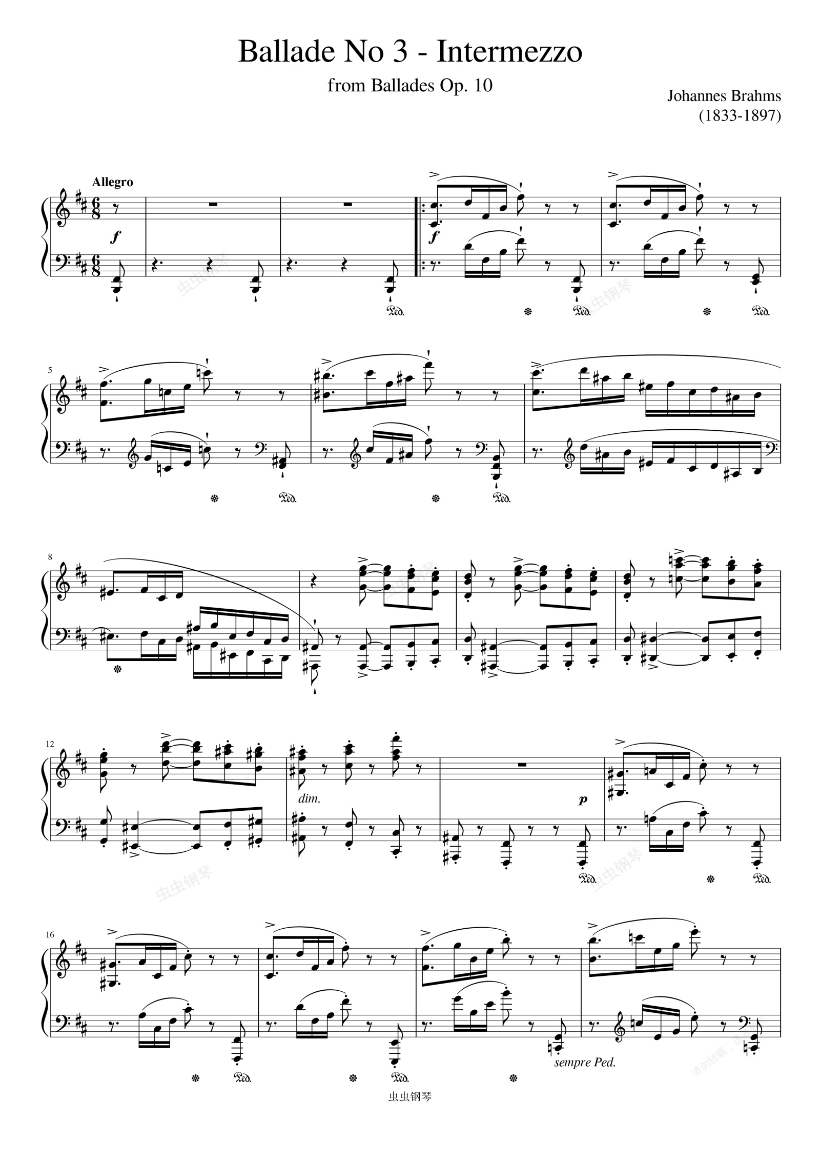 钢琴谱:Brahms - Ballade Op 10 No 3 - Intermezzo
