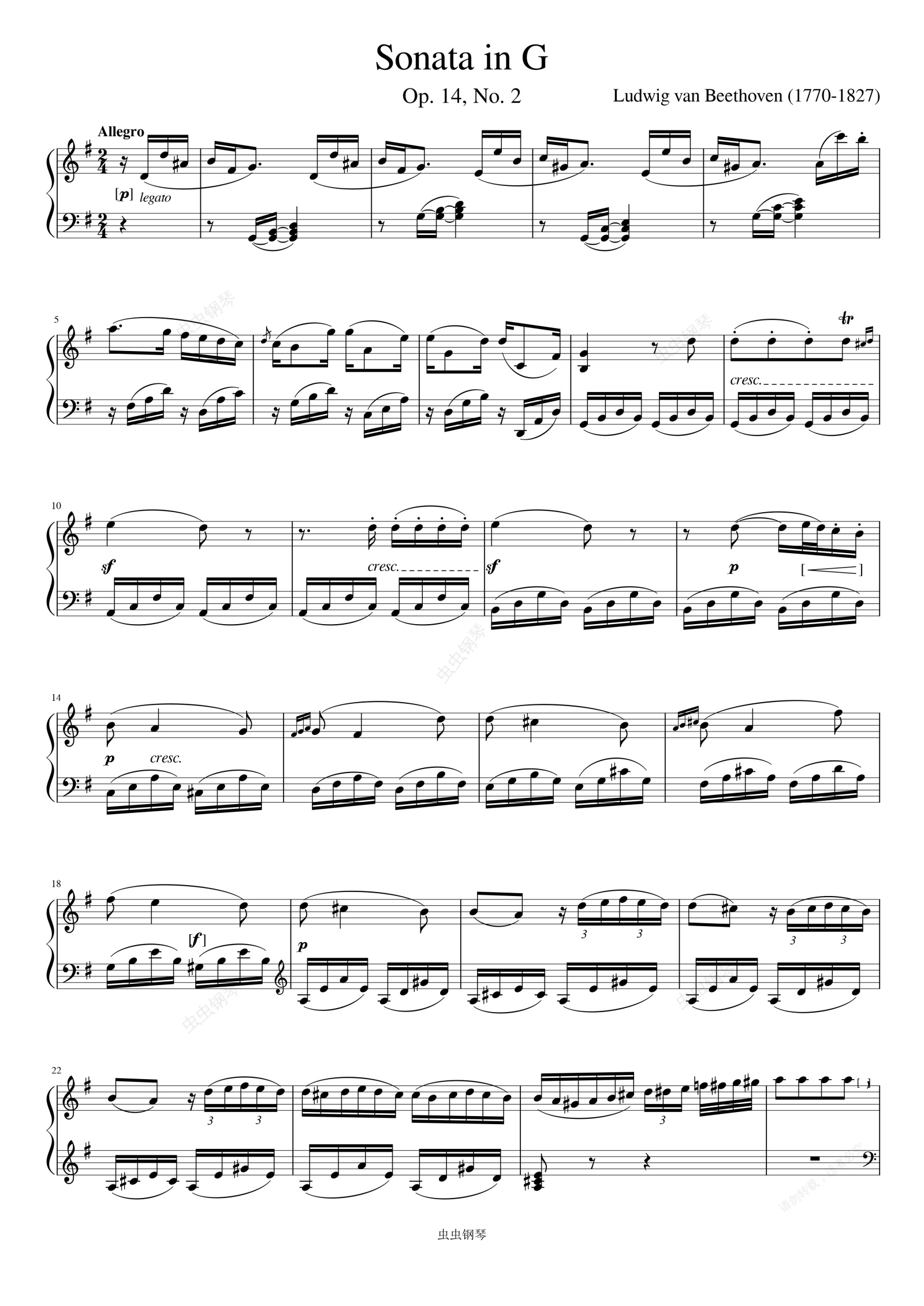 钢琴谱:Beethoven - Sonata in G Op.14 No.2 Movement I