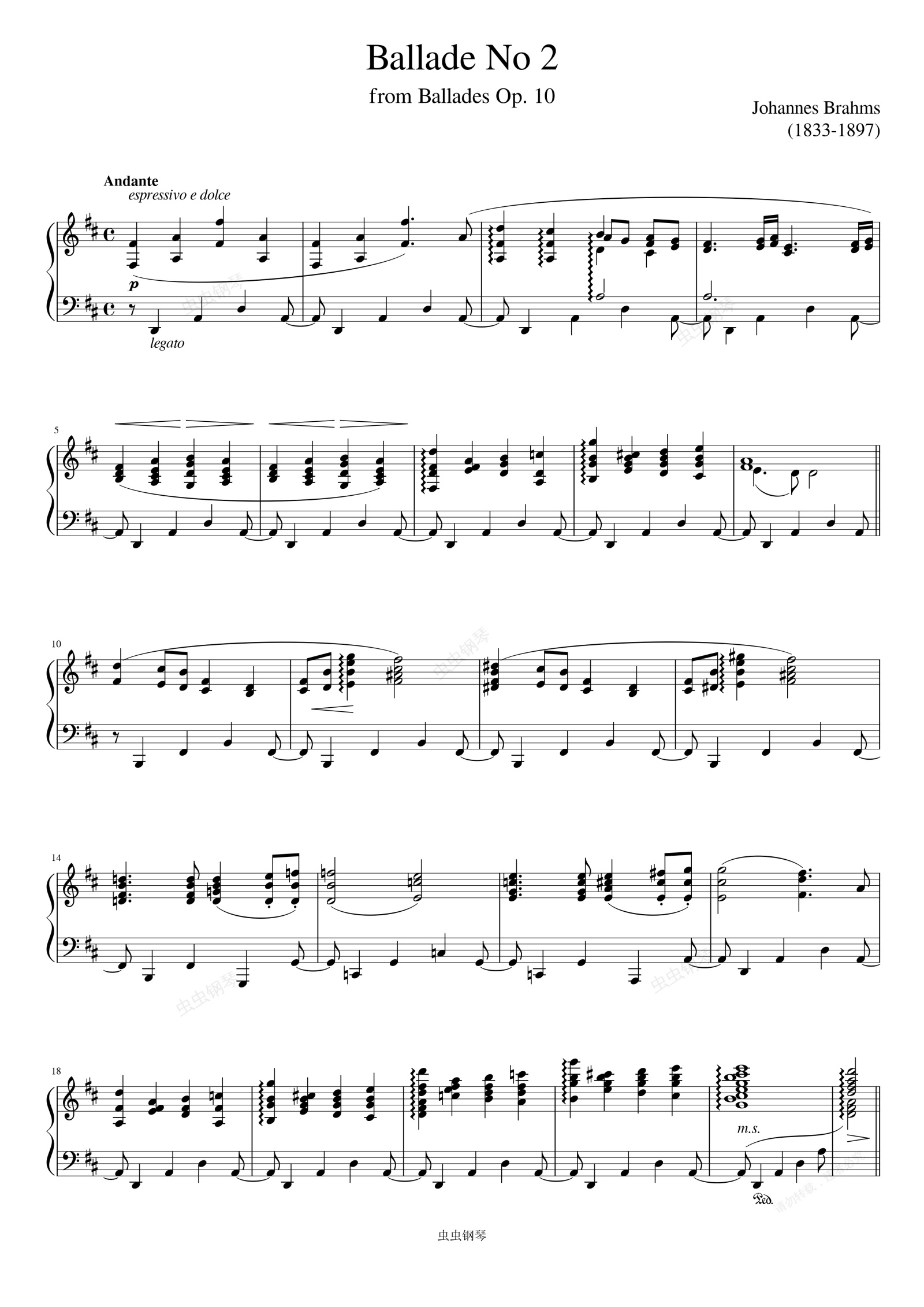 钢琴谱:Brahms - Ballade Op 10 No 2