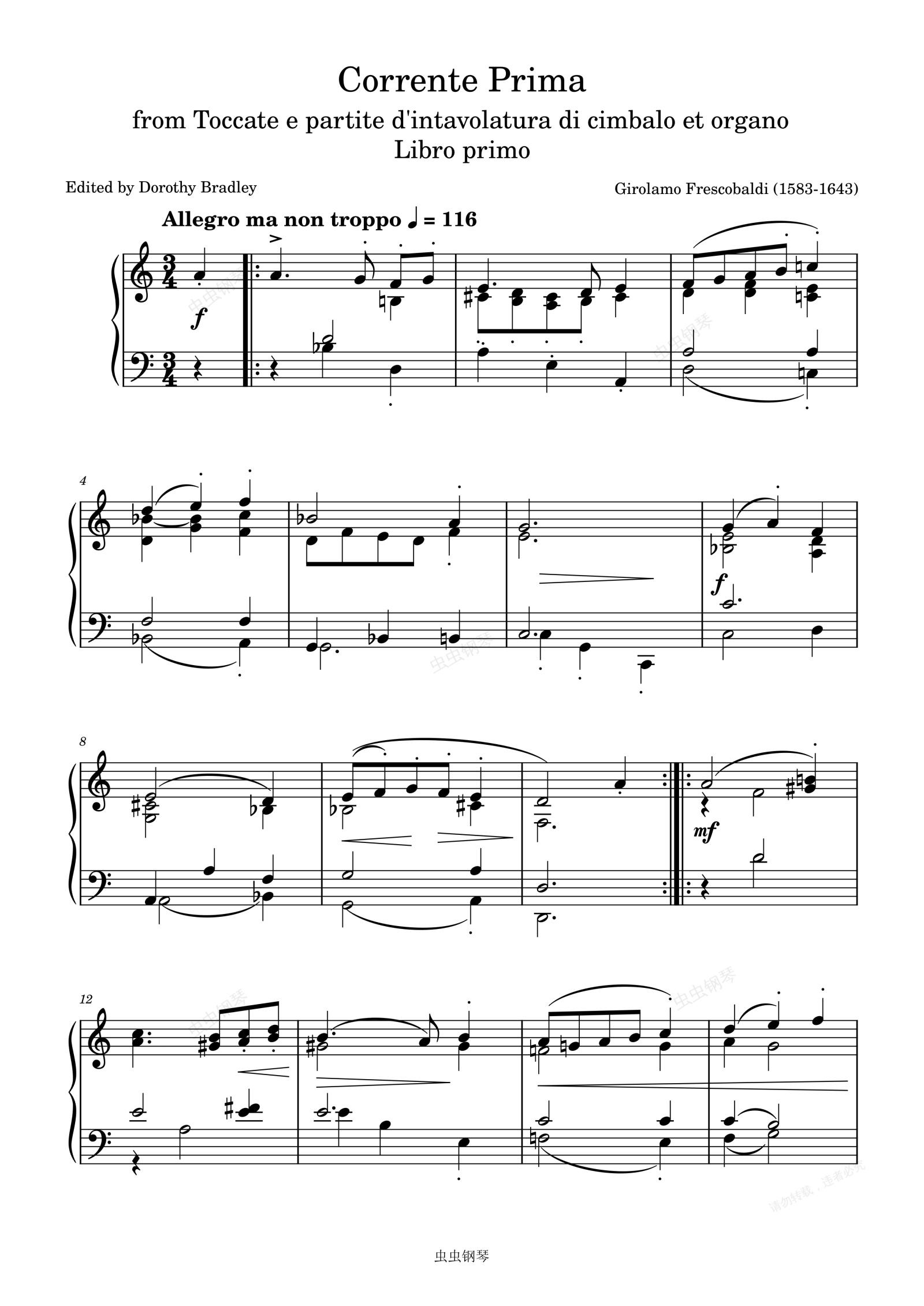 钢琴谱:Corrente Prima – Girolamo Frescobaldi