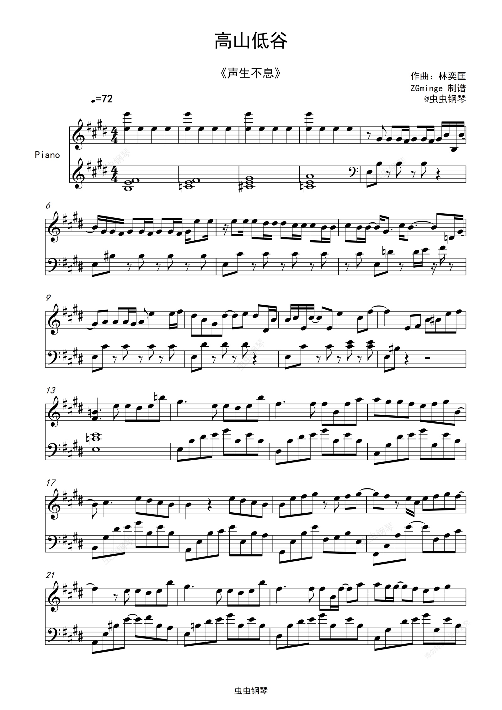 钢琴谱:高山低谷 (杨千嬅、单依纯、周笔畅)