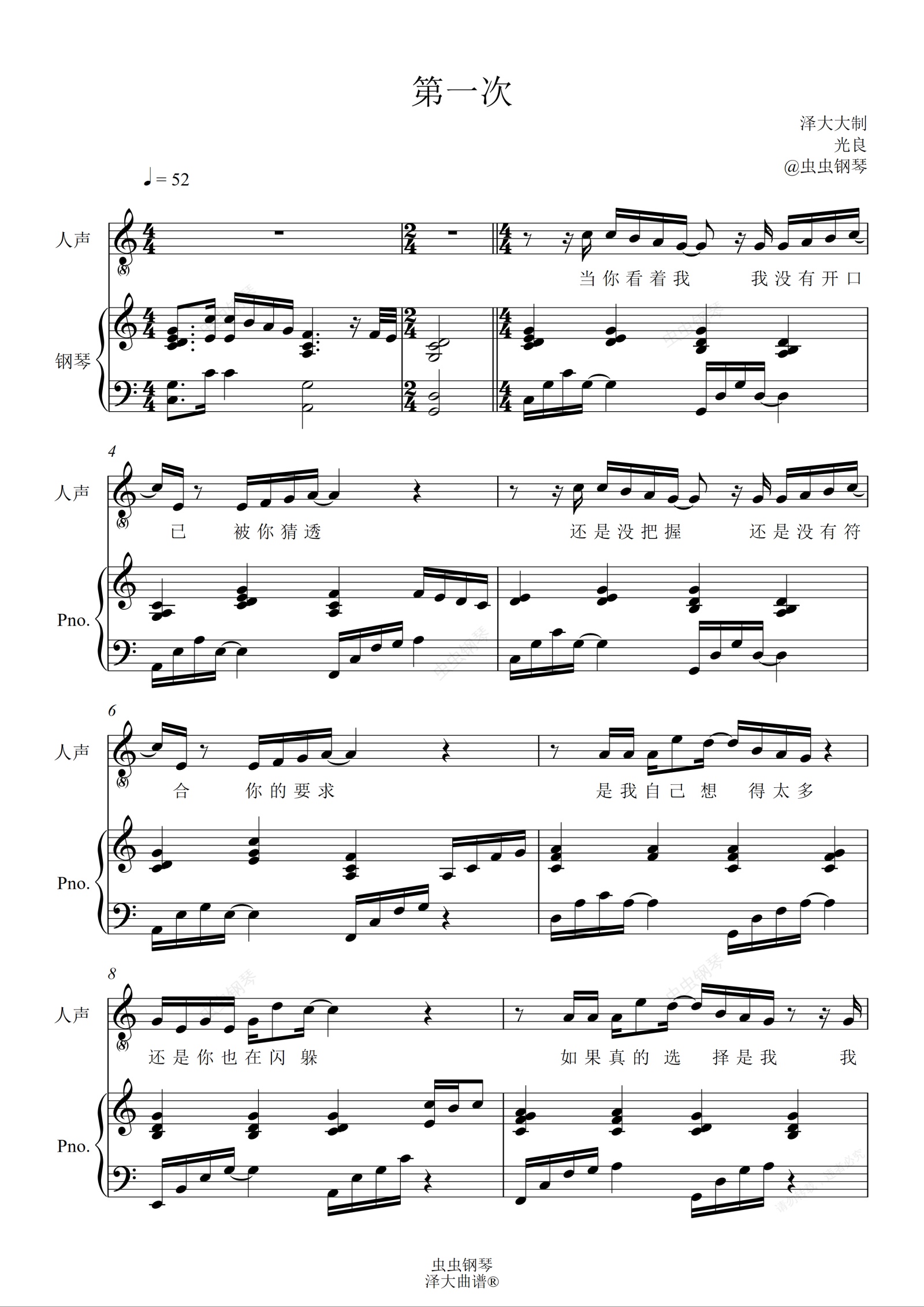 钢琴谱:第一次【C调原版弹唱附词】520表白曲 泽大大 光良