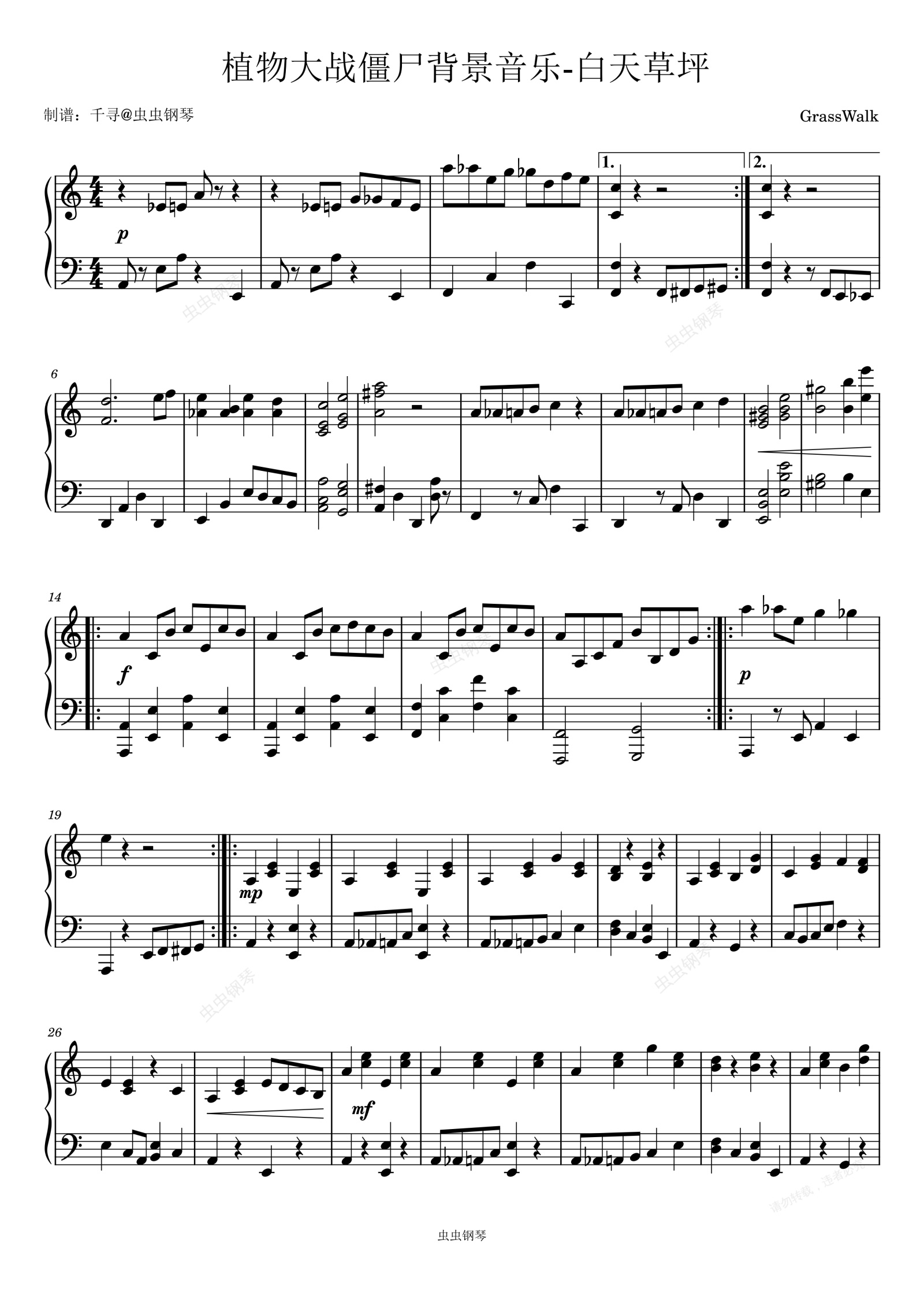 钢琴谱:Graze the Roof 植物大战僵尸背景音乐-白天草坪