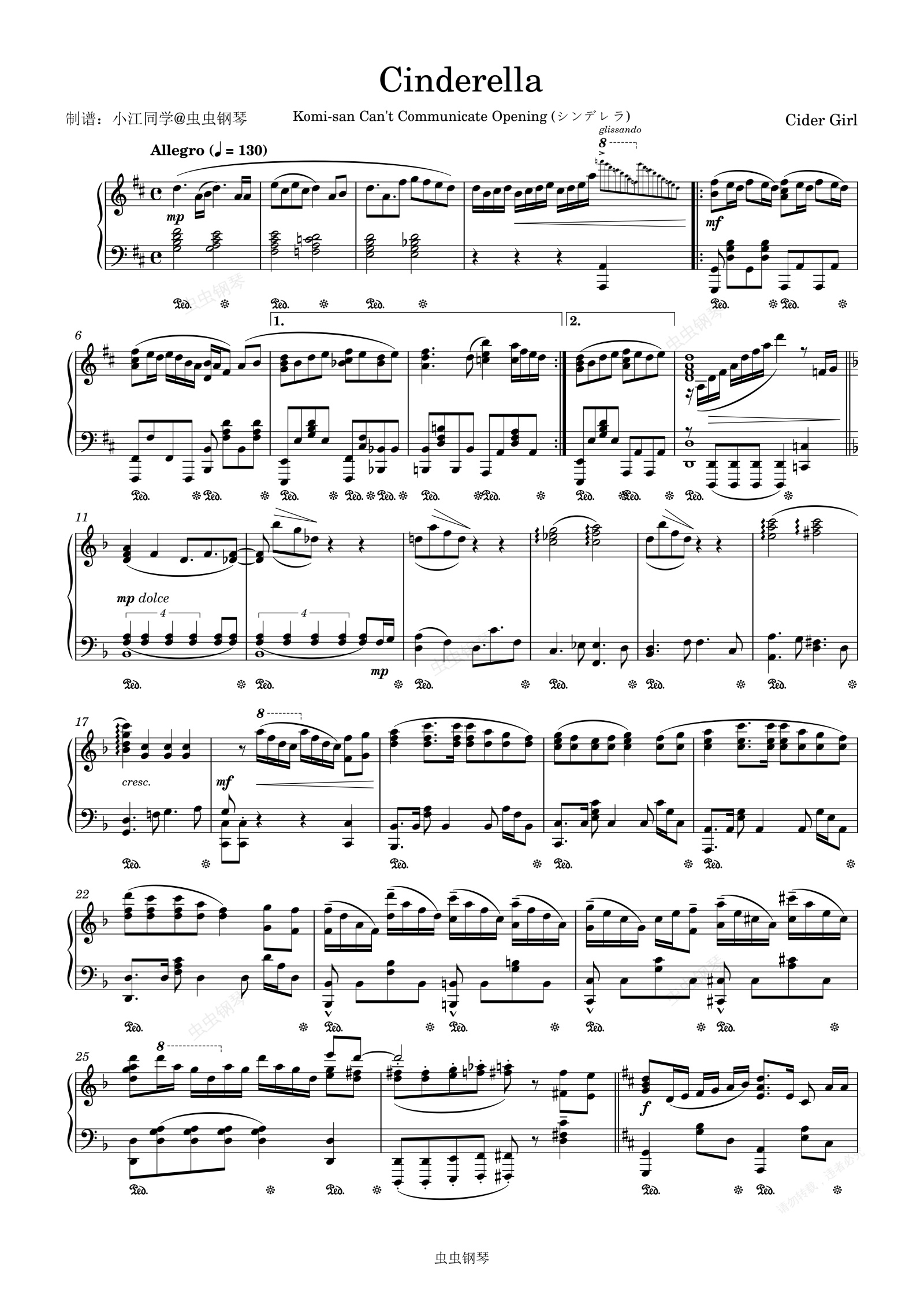 钢琴谱:シンデレラ (TV动画《古见同学有交流障碍症》OP