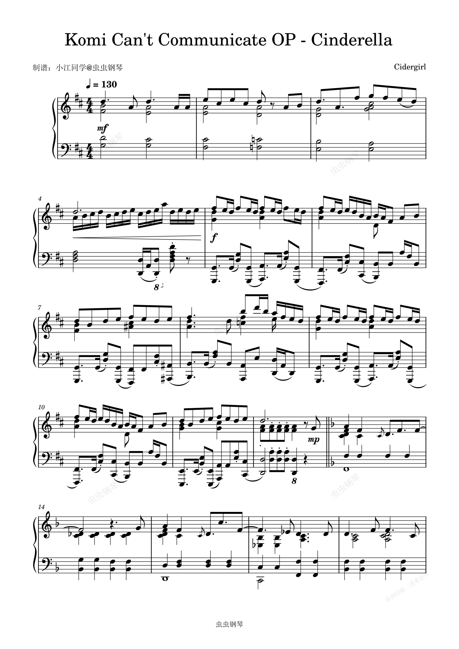 钢琴谱:Cinderella (TV动画《古见同学有交流障碍症》OP)