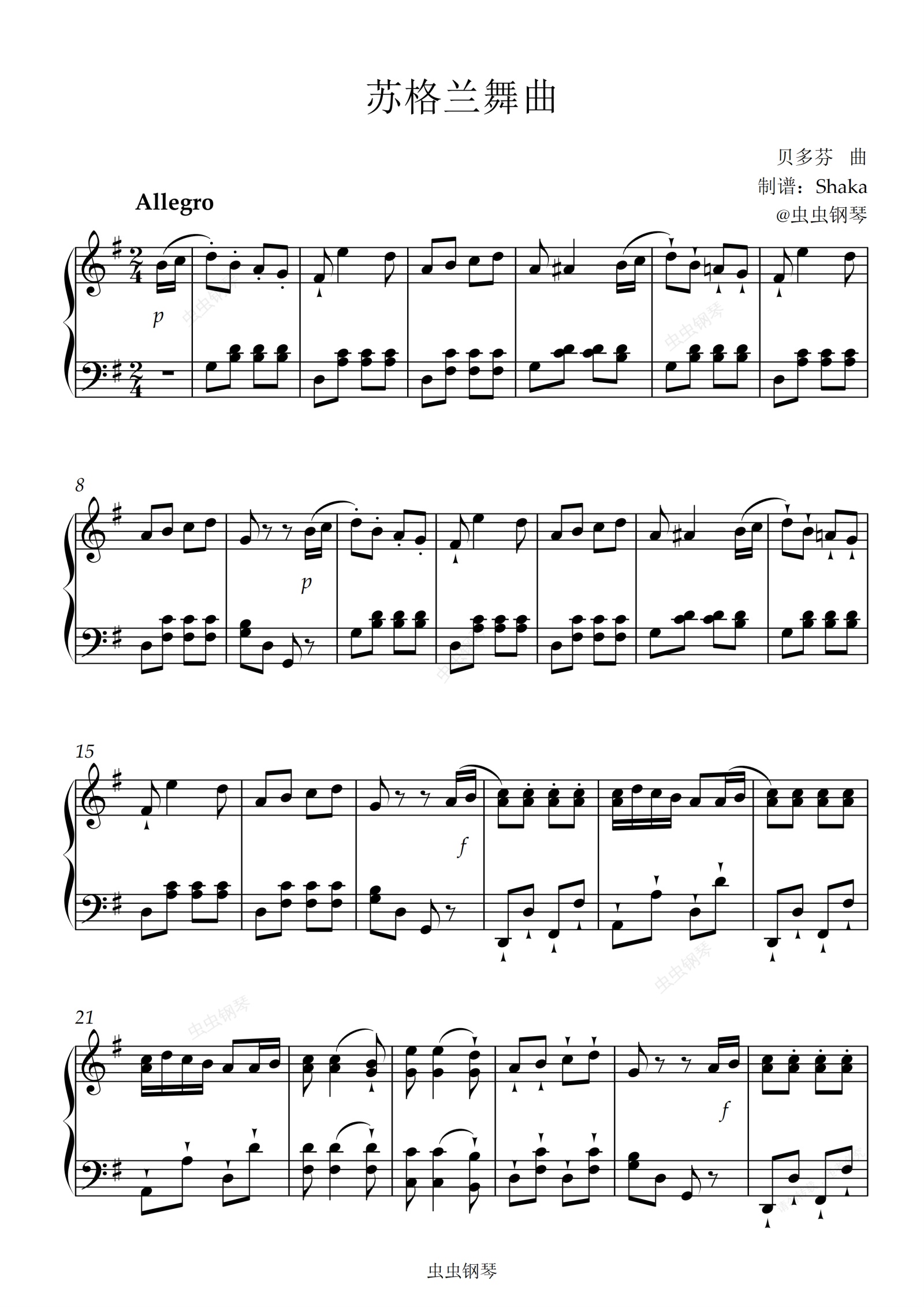 钢琴谱:苏格兰舞曲 贝多芬 上海音乐学院2级考级曲目