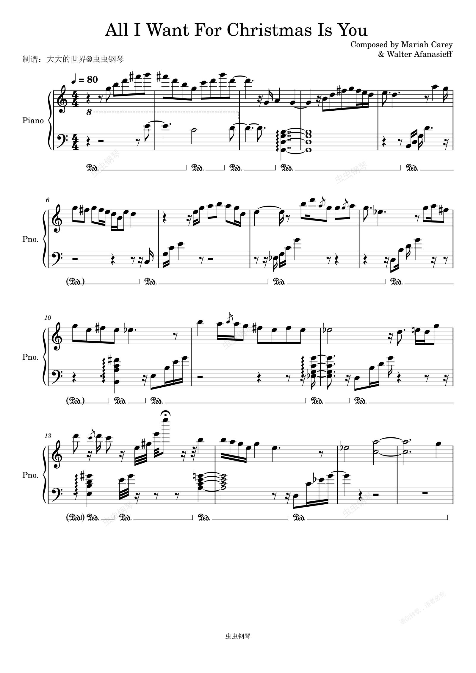 钢琴谱:All I Want For Christmas Is You (四手联弹)