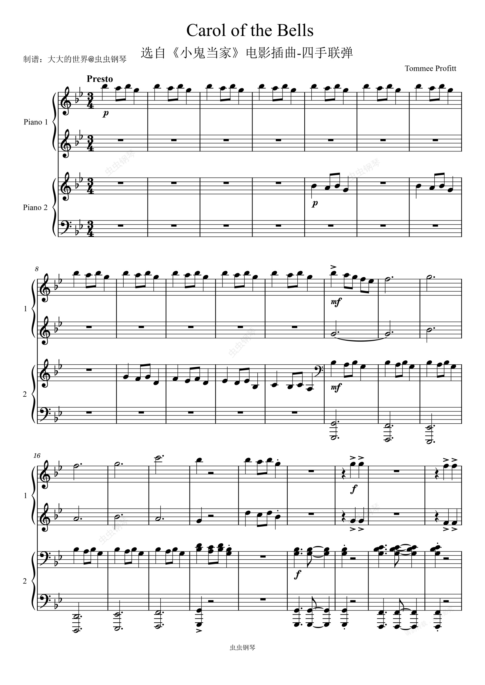 钢琴谱:Carol of the Bells(四手联弹)-《小鬼当家》电影插曲