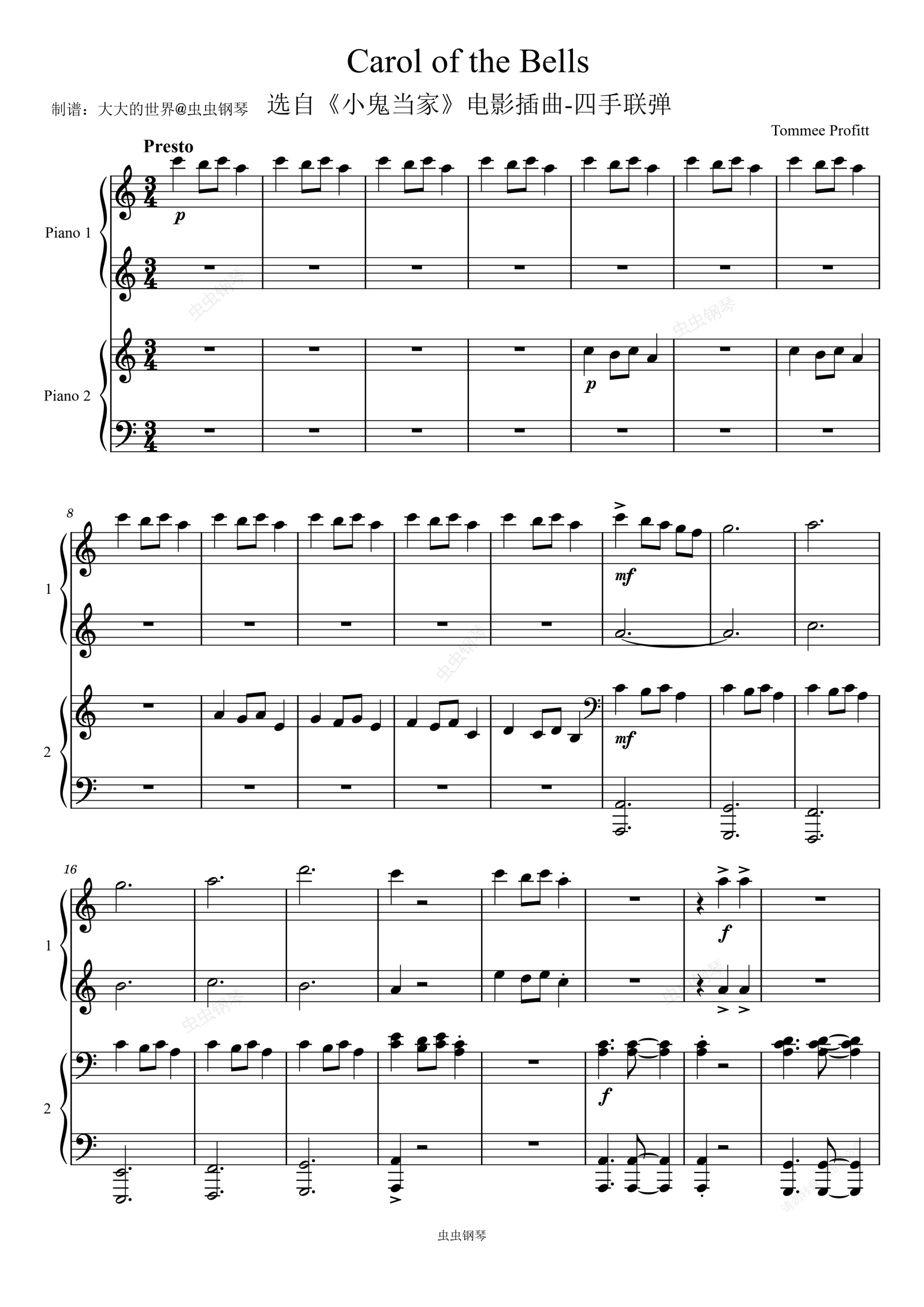 钢琴谱:Carol of the Bells(四手联弹)-《小鬼当家》电影插曲