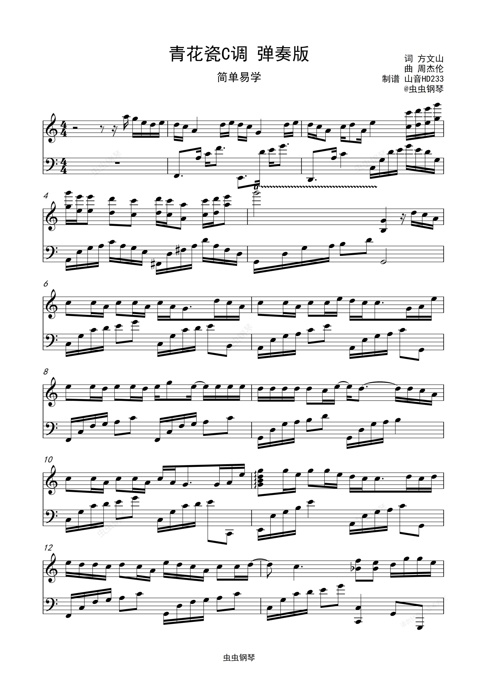 钢琴谱:青花瓷--周杰伦 C调 弹奏版(初学版)