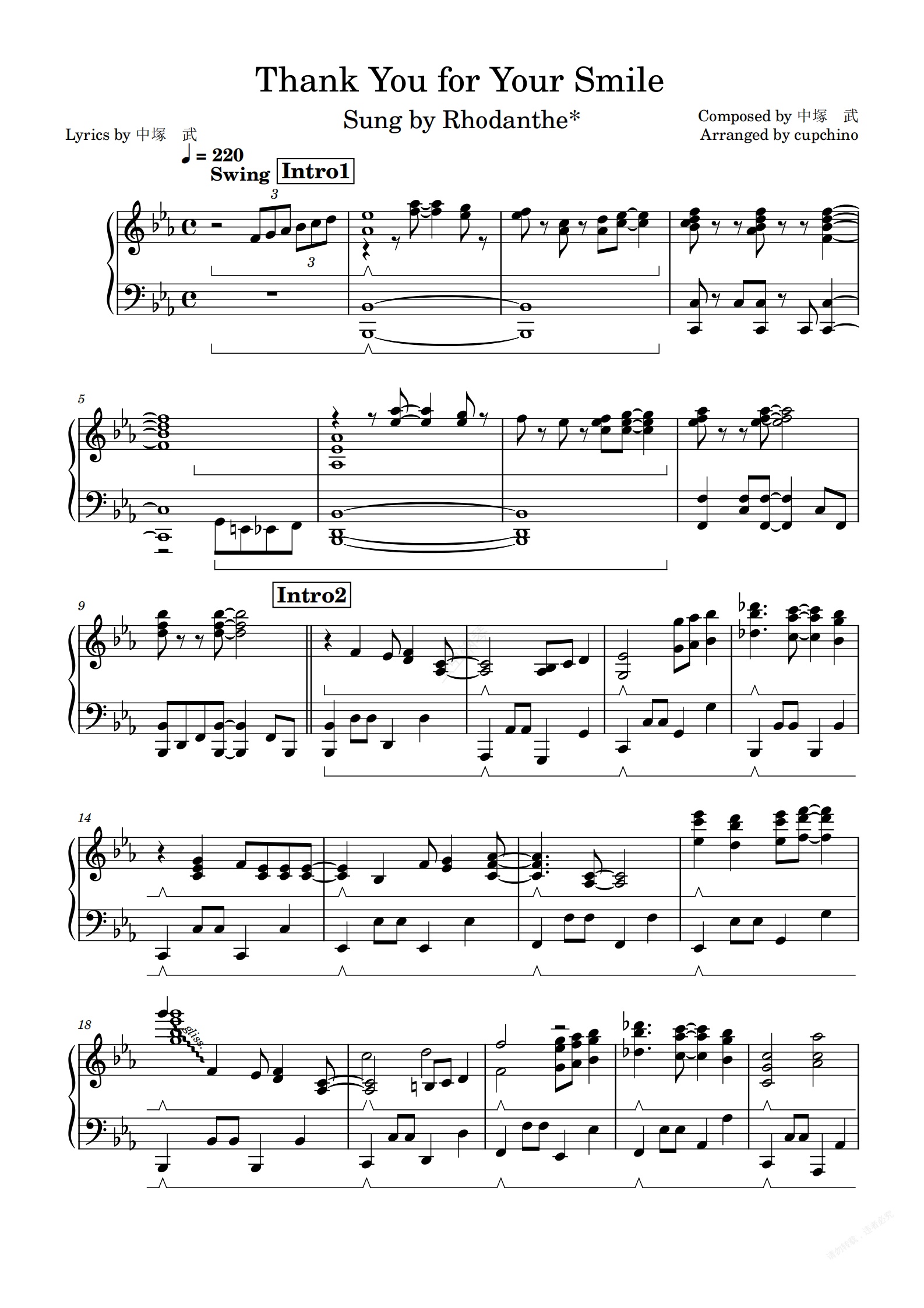 钢琴谱:【黄金拼图Thank you!! ed曲】Thank You for Your Smile