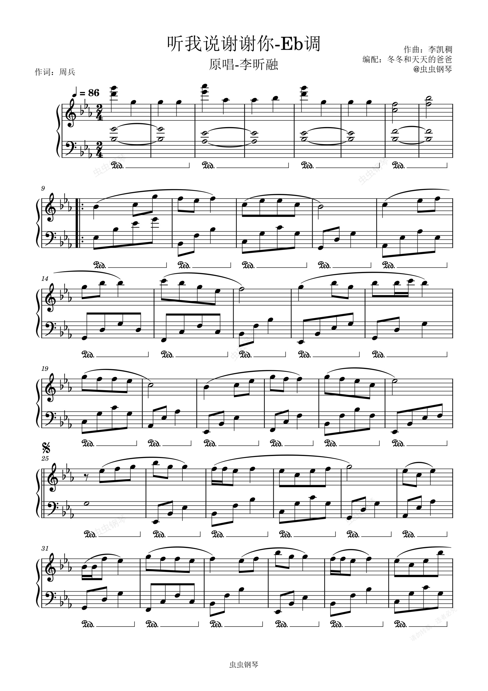 钢琴谱:听我说谢谢你【拜厄难度】-李昕融 Eb调