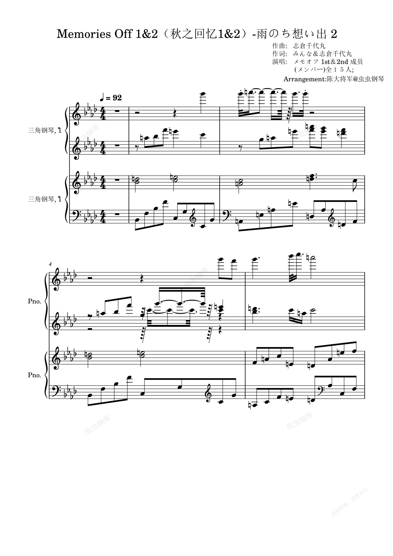 钢琴谱:Memories Off 1&2(秋之回忆1&2)-雨のち想い出 2