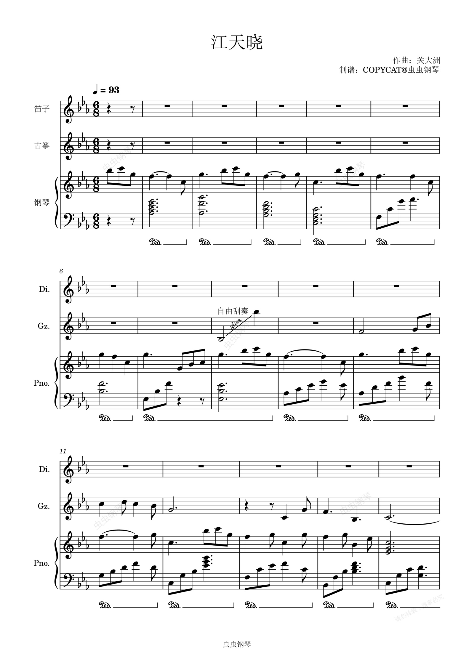 钢琴谱:江天晓-关大洲(竹笛 古筝 钢琴)