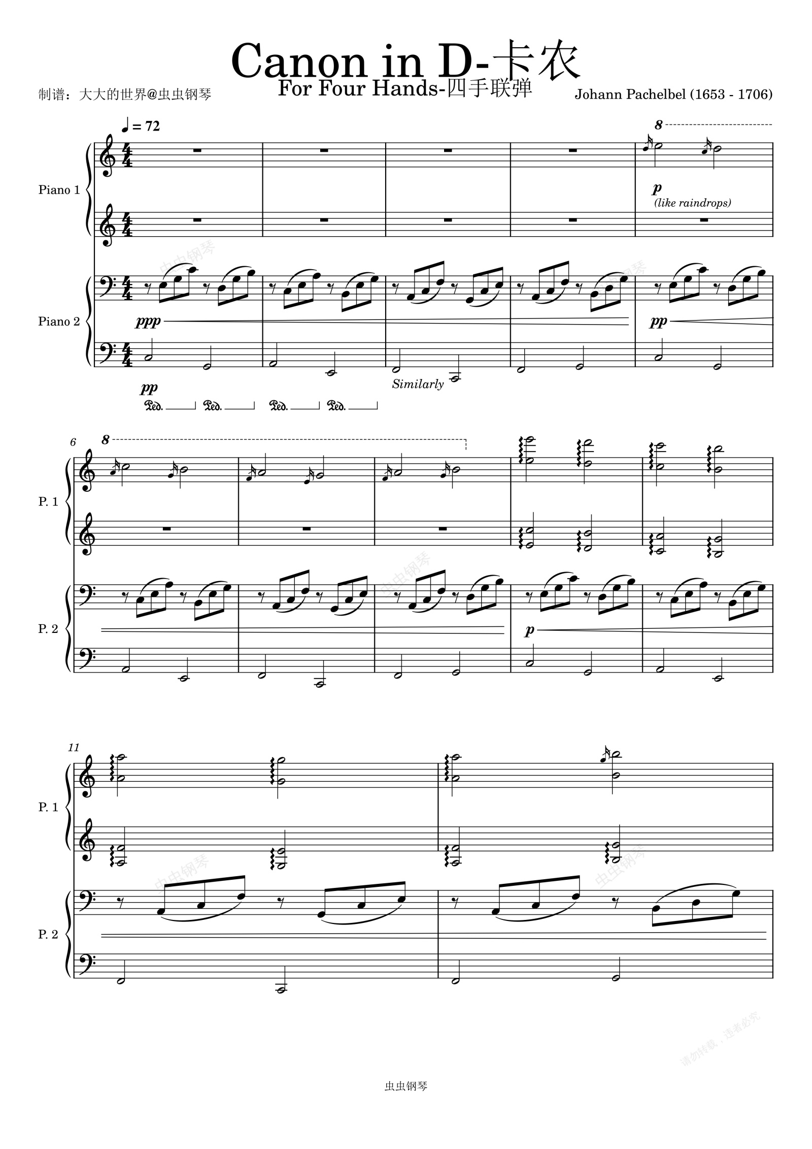 钢琴谱:卡农【四手联弹】-Canon in C(Johann Pachelbel)