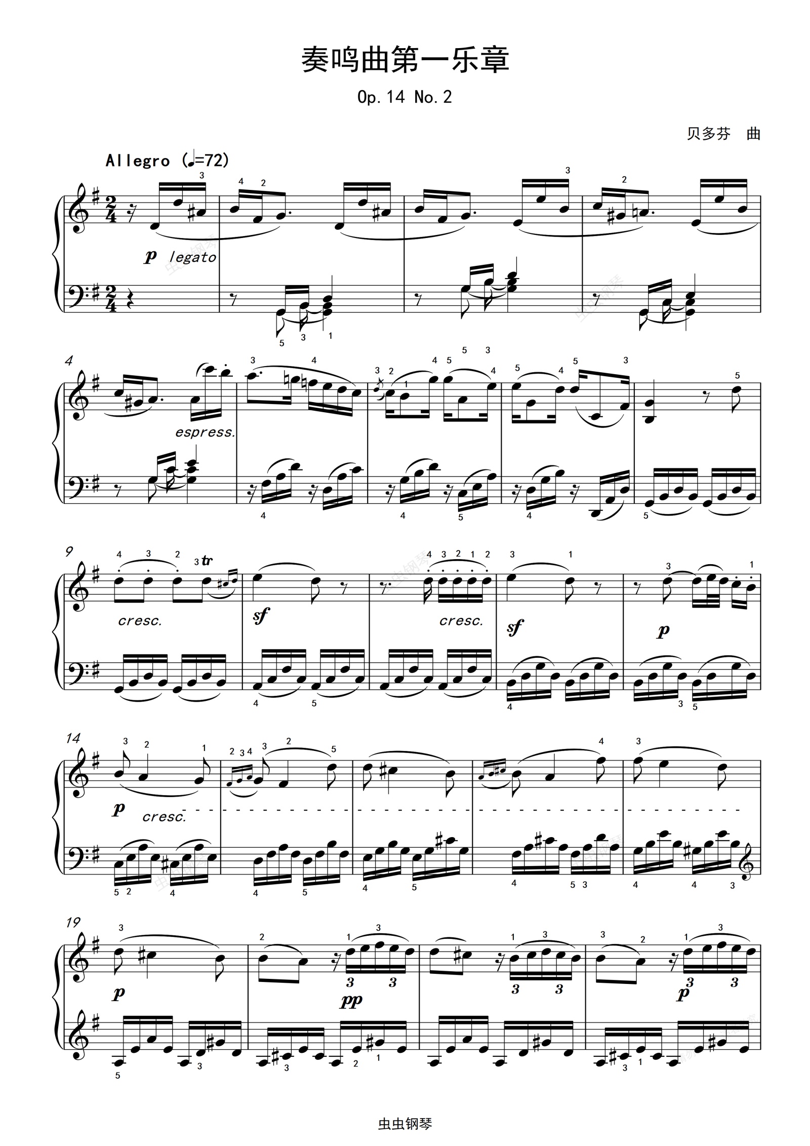 钢琴谱:8级-大型乐曲-奏鸣曲第一乐章Op.14 No.2(贝多芬)