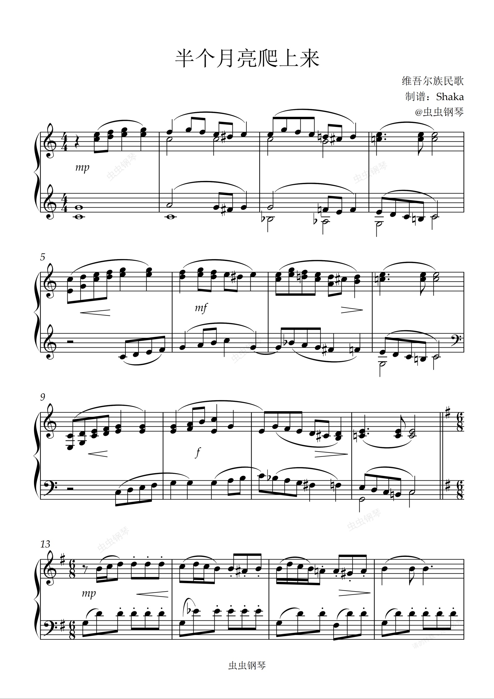 钢琴谱:半个月亮爬上来 上海音乐学院5级考级曲目