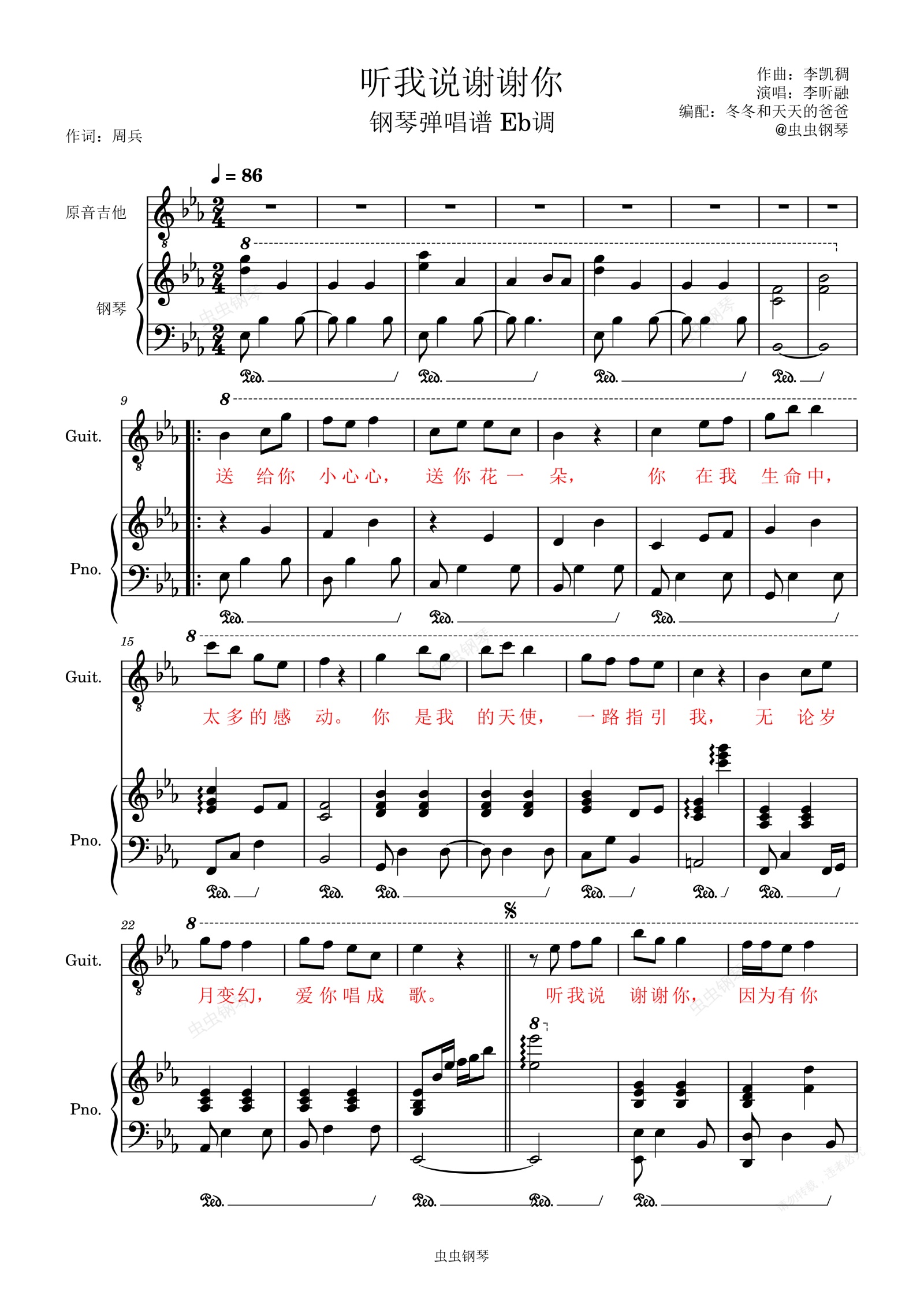 钢琴谱:听我说谢谢你-钢琴弹唱谱 Eb调