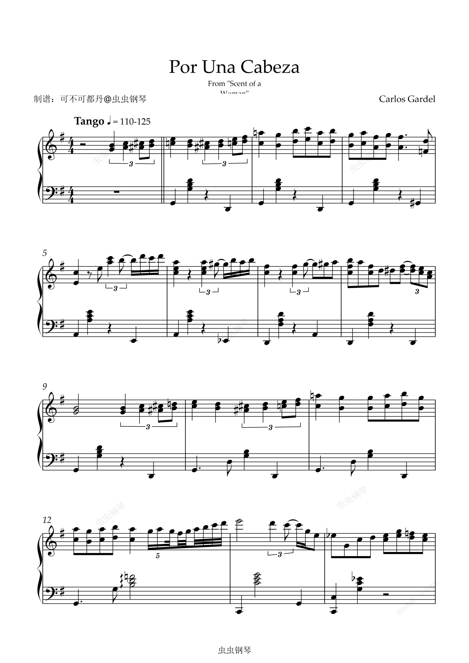 钢琴谱:《闻香识女人》一步之遥(Por Una Cabeza)Sangah Noona