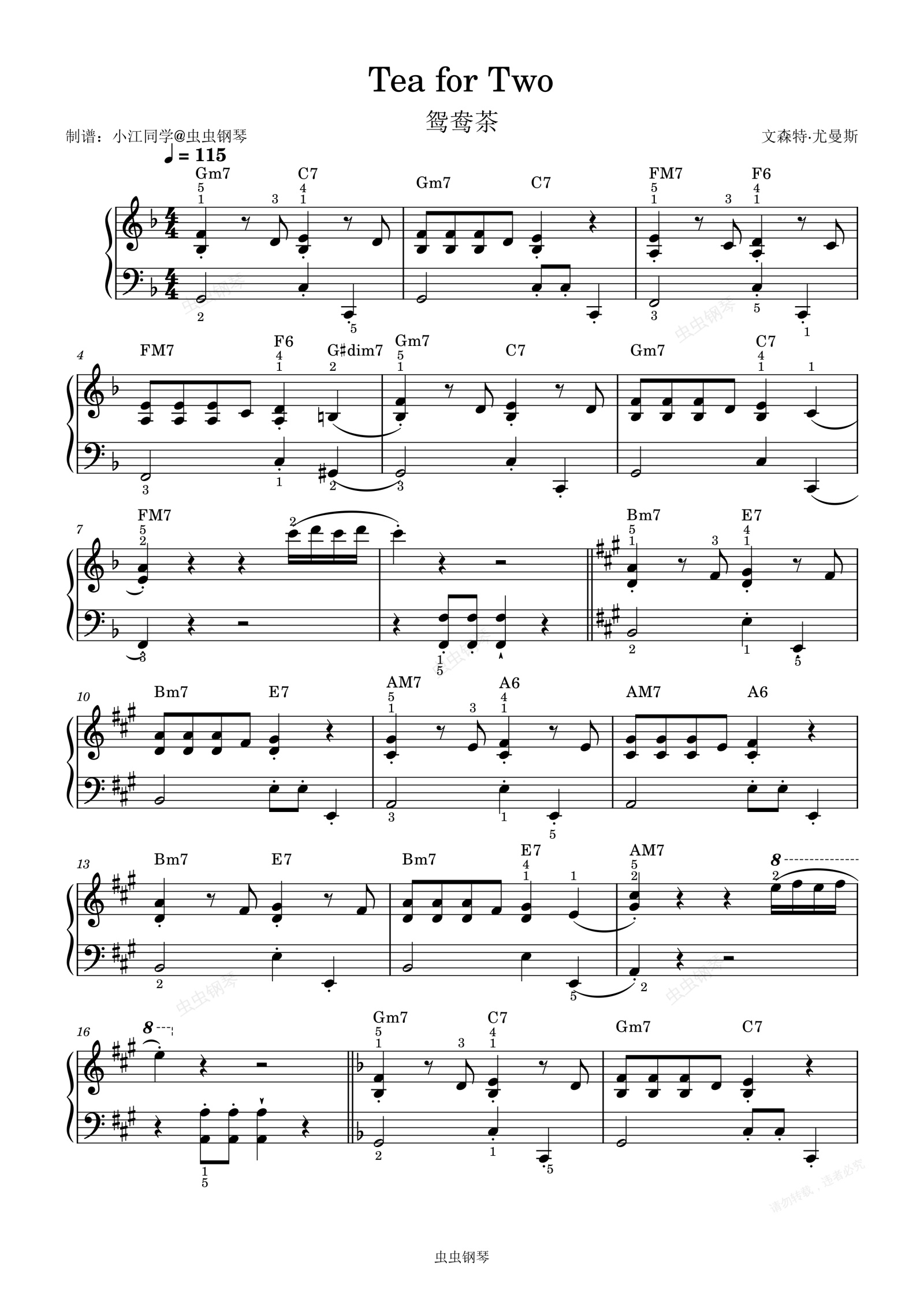 钢琴谱:Tea for Two 简单版(带指法和弦标记)