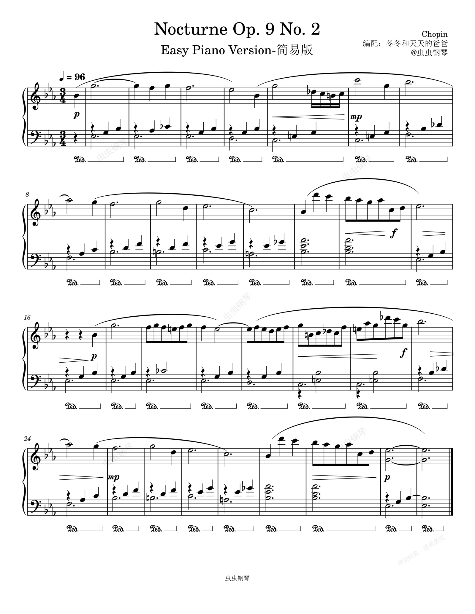 钢琴谱:Chopin Nocturne E Flat Major Op.9 No.2降E大调夜曲肖邦最美的钢琴曲【肖邦遗作】-简易版【小汤3难度】