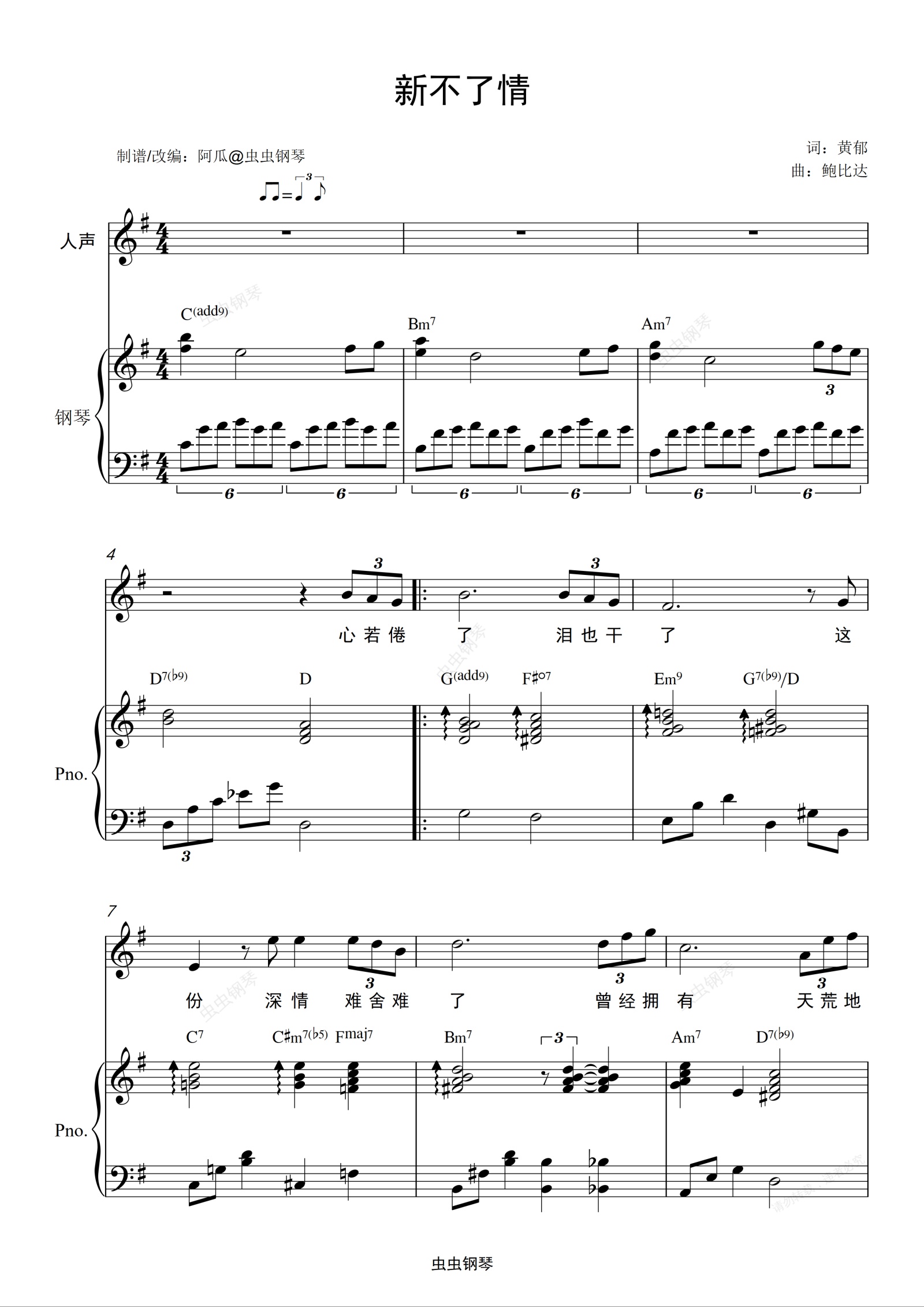 钢琴谱:新不了情-不会真有人觉得好听吧~