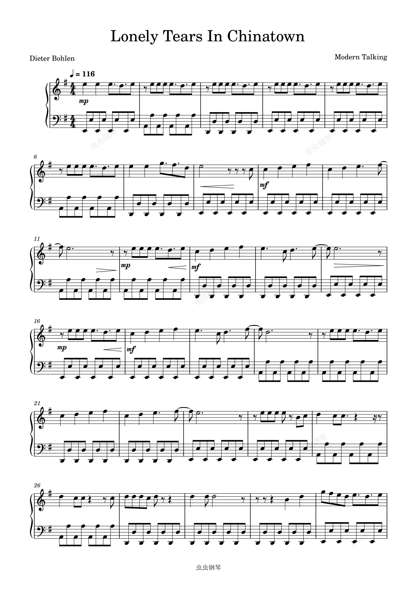 钢琴谱:Lonelу Tears In Chinatown- Modern Talking
