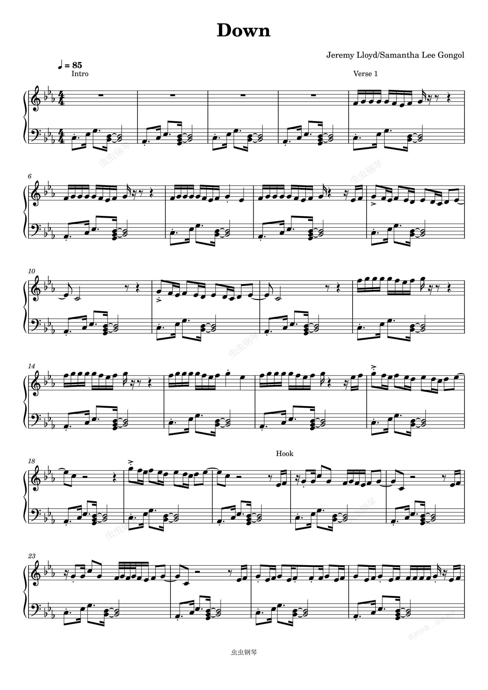 钢琴谱:Marian Hill-Down