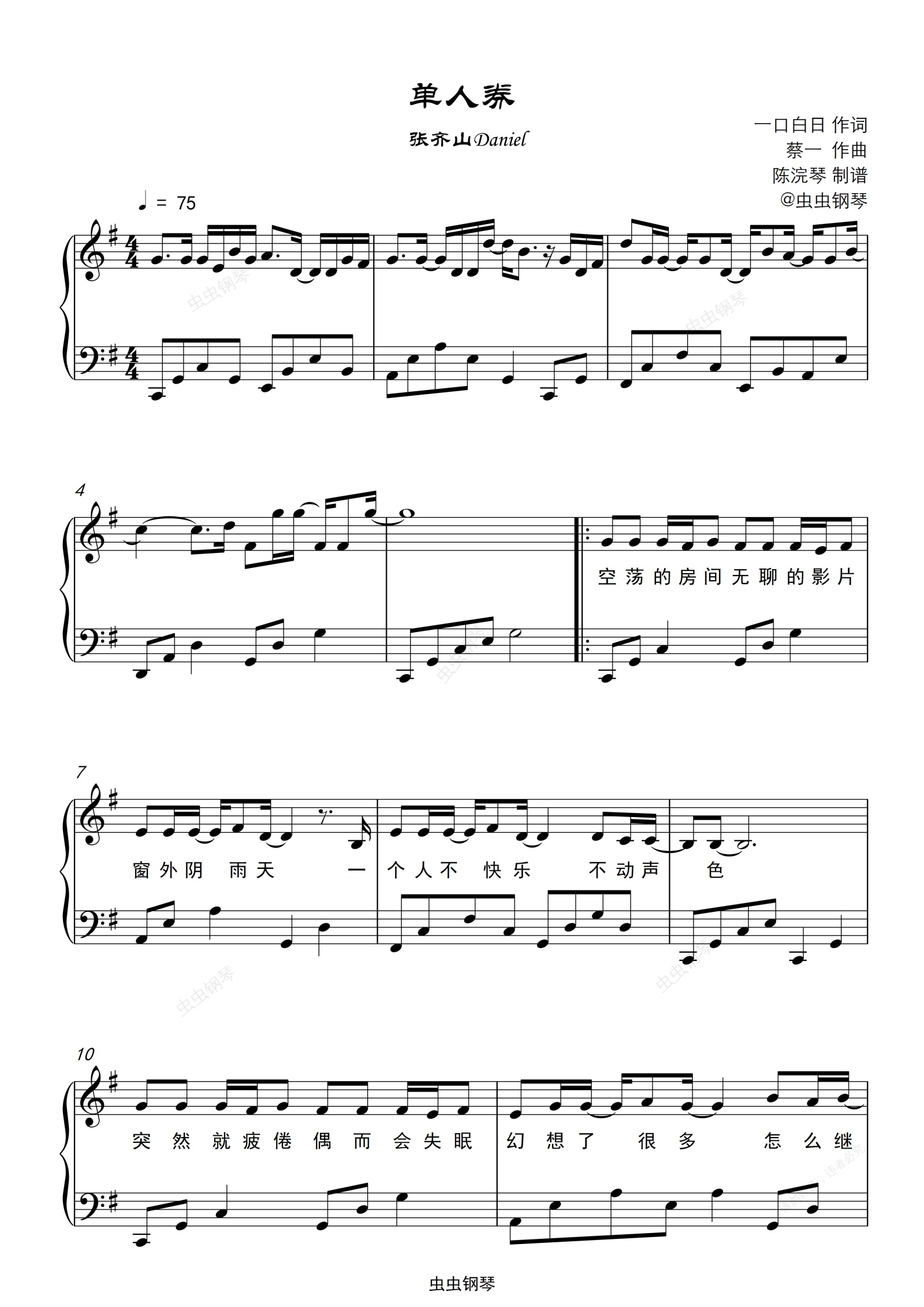 钢琴谱:单人券