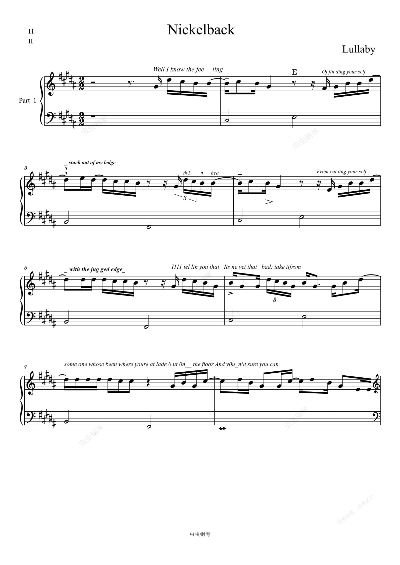 钢琴谱:Lullaby-Nickleback