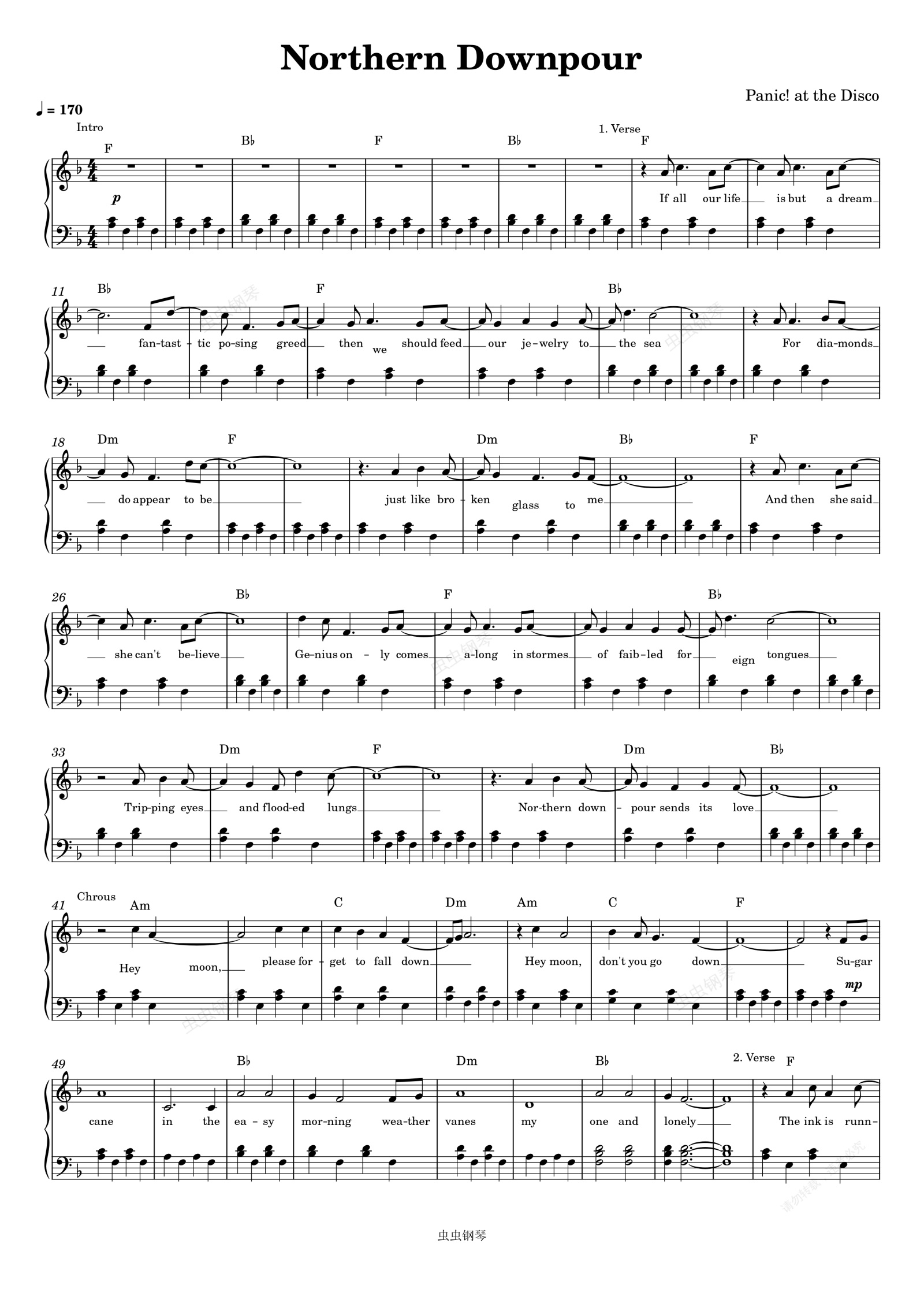钢琴谱:Northern Downpour-Panic! At The Disco