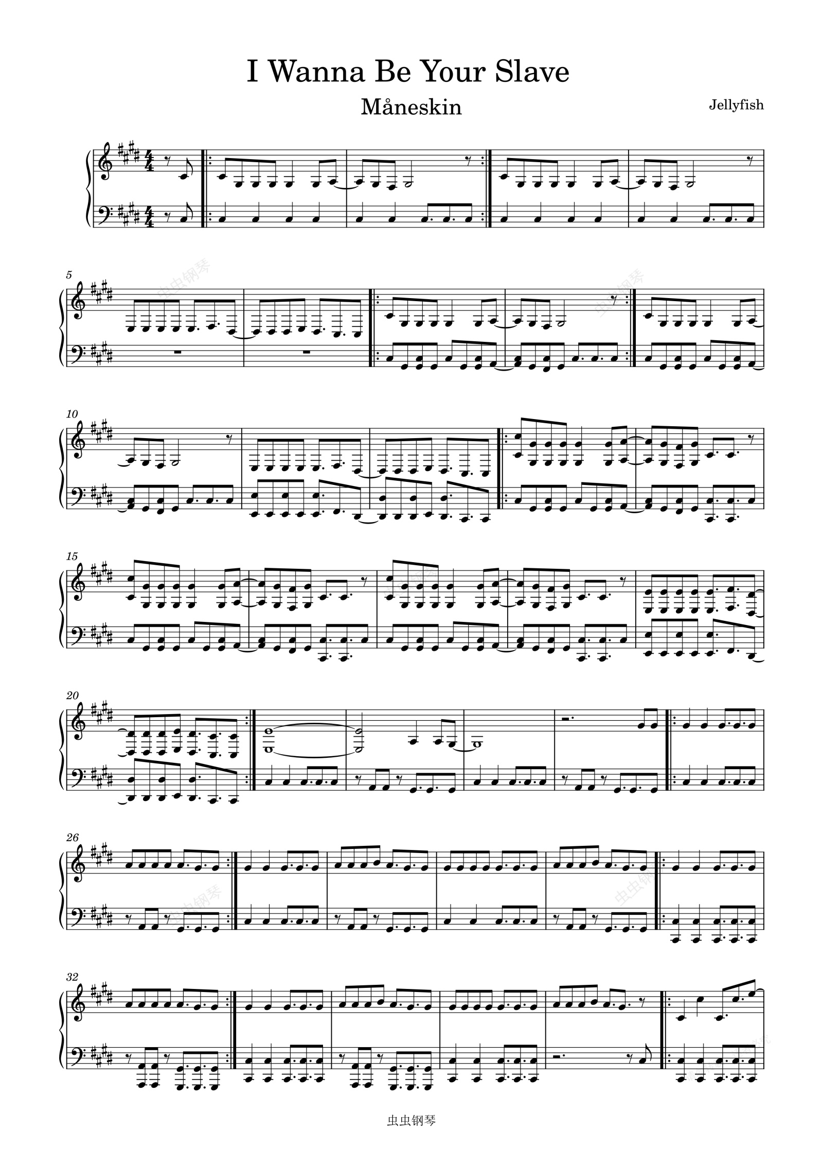 钢琴谱:I Wanna Be Your Slave-Måneskin