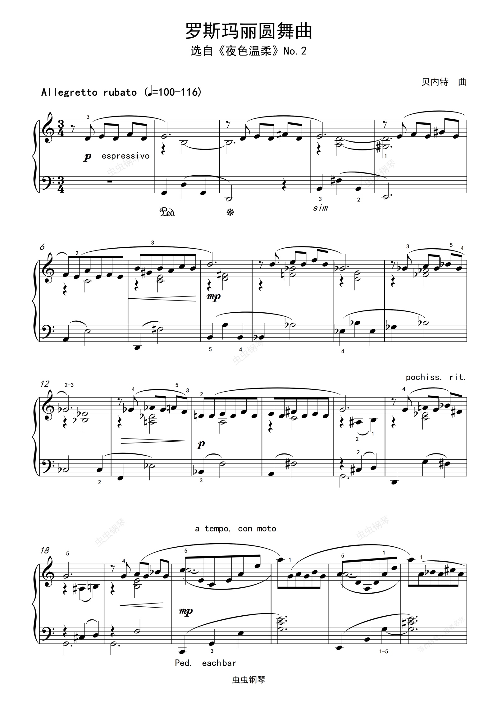 钢琴谱:8级-小型乐曲-罗斯玛丽圆舞曲《夜色温柔》No.2