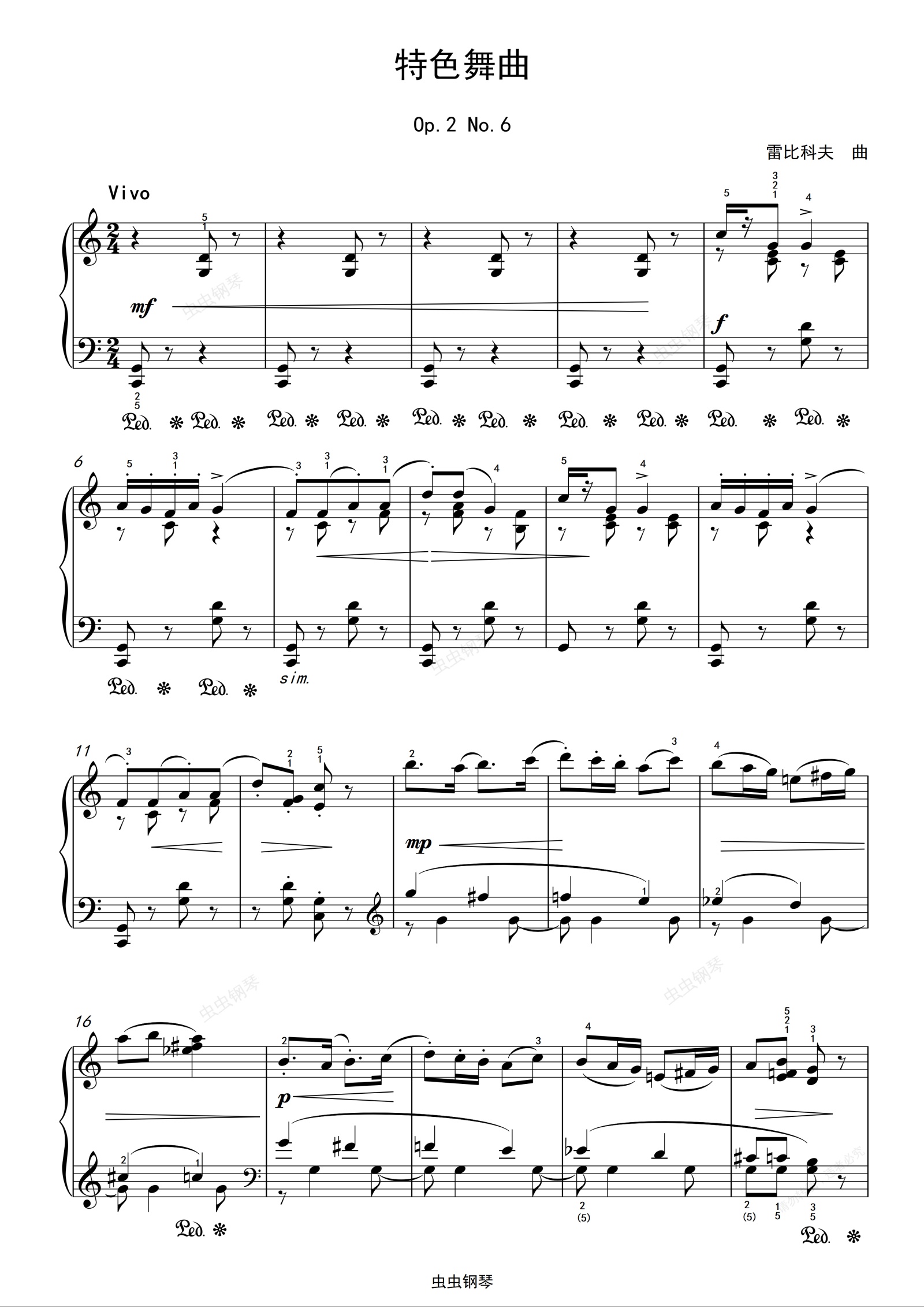 钢琴谱:8级-小型乐曲-特色舞曲Op.2 No.6