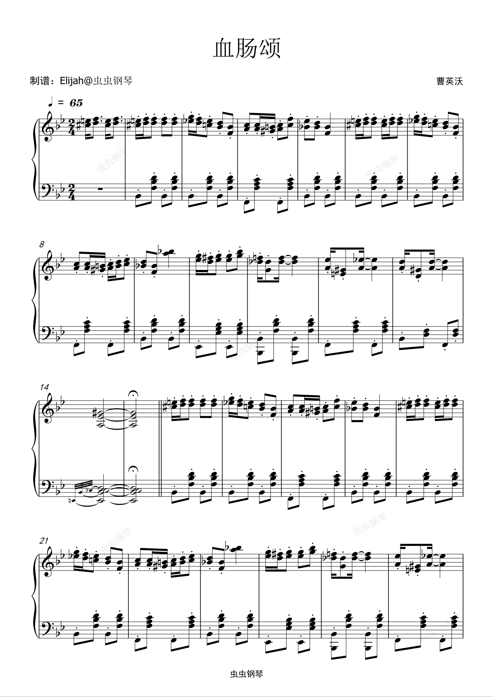 钢琴谱:血肠颂-순대송