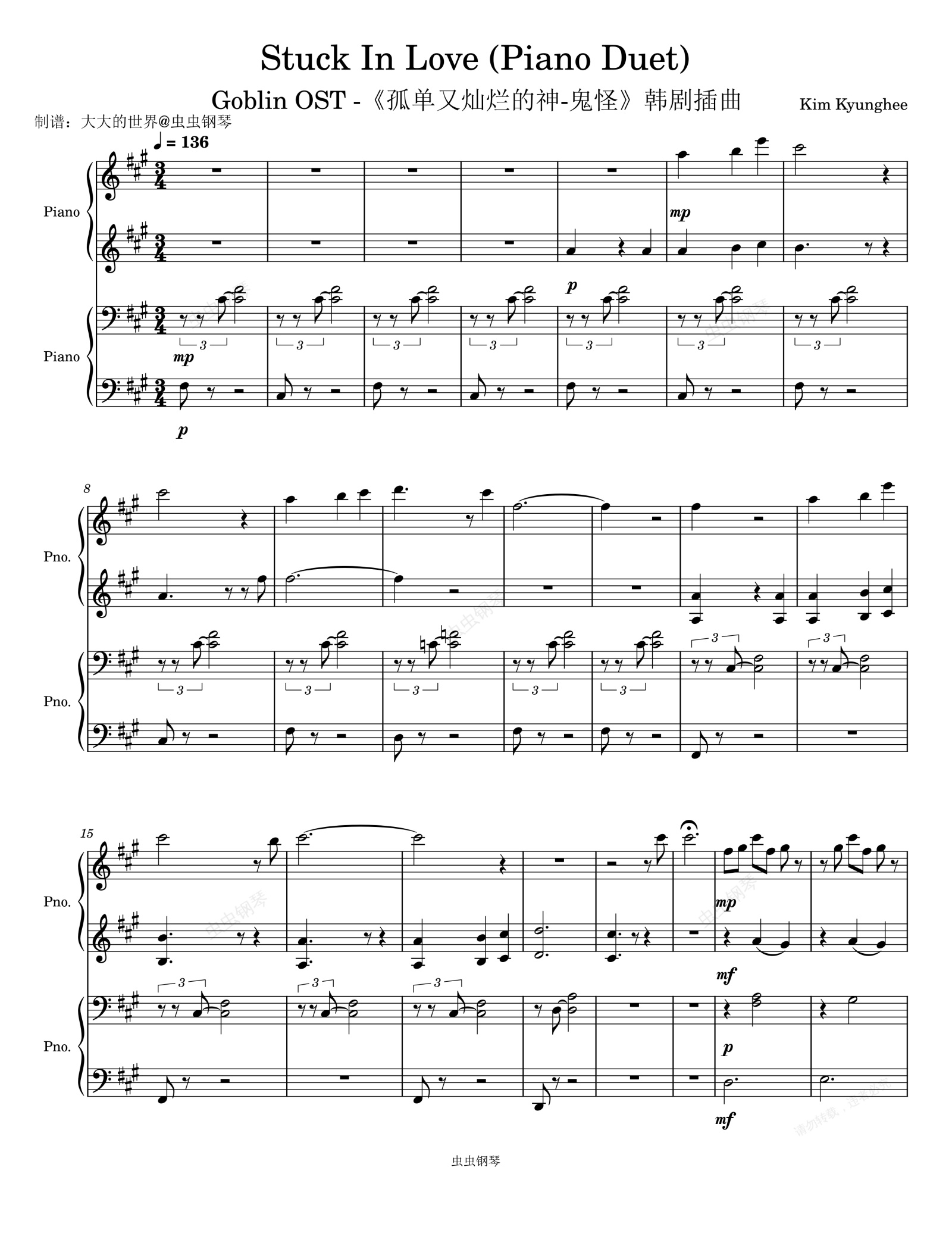 钢琴谱:Stuck In Love-《孤单又灿烂的神-鬼怪》韩剧插曲【四手联弹】