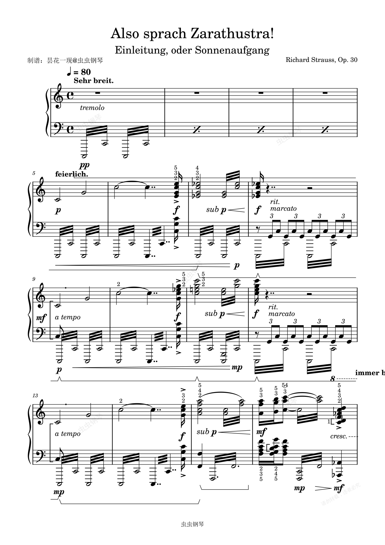 钢琴谱:查拉图斯特拉如是说 理查·德施特劳斯