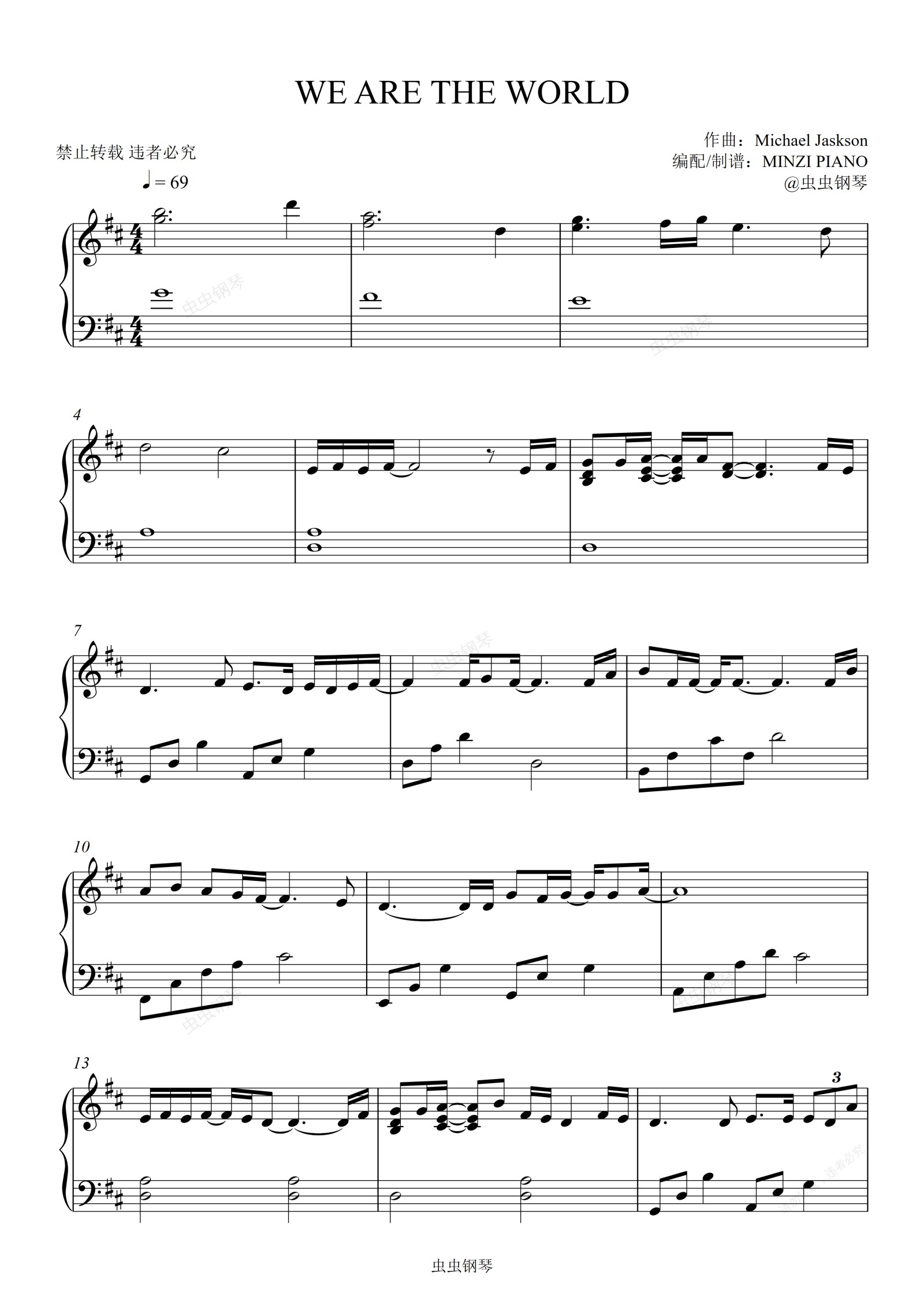 钢琴谱:《We Are The World》Michael Jackson