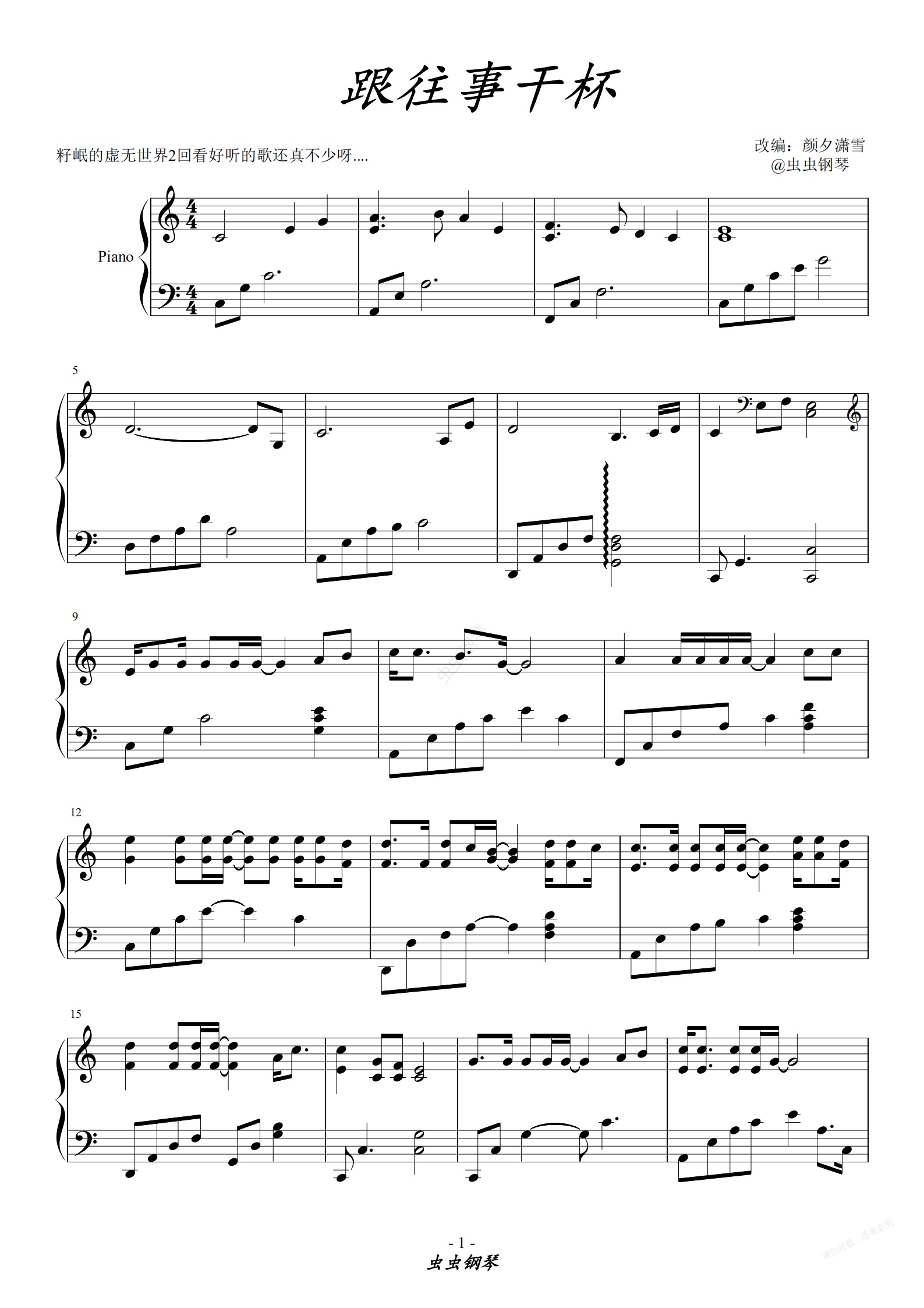 钢琴谱:跟往事干杯【籽岷虚无世界2背景曲】