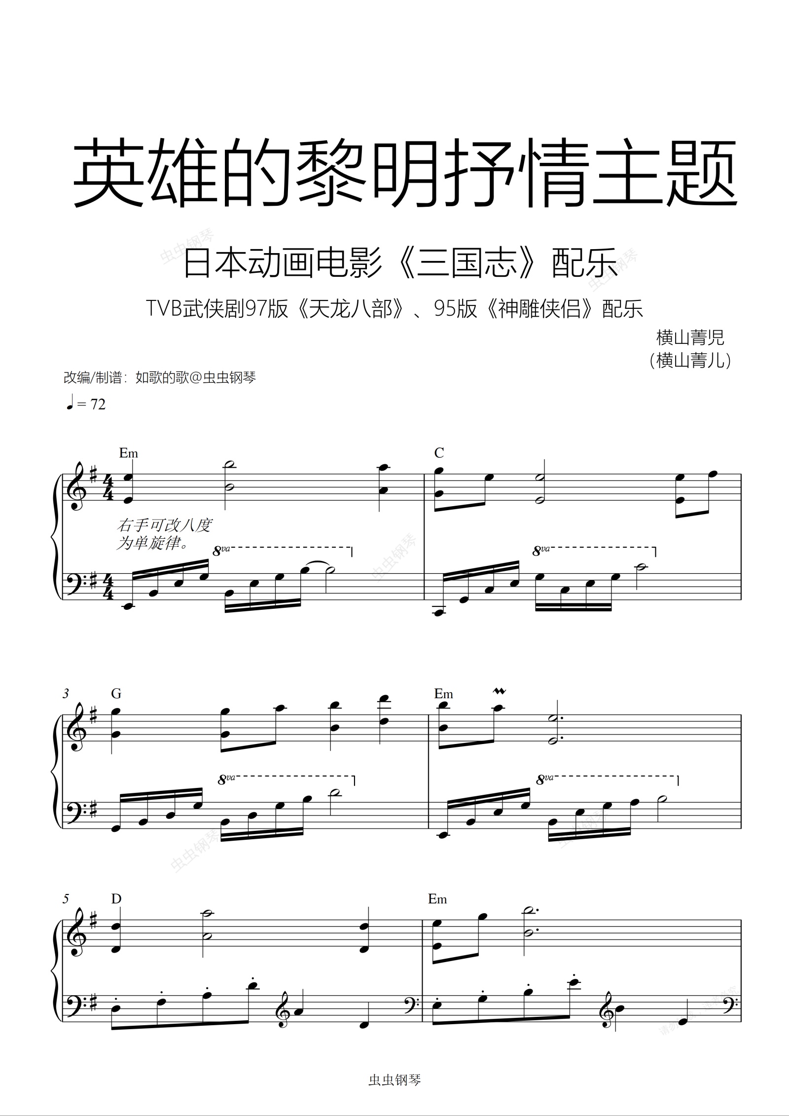钢琴谱:英雄たちの夜明け-动漫三国志ost,TVB御用配乐