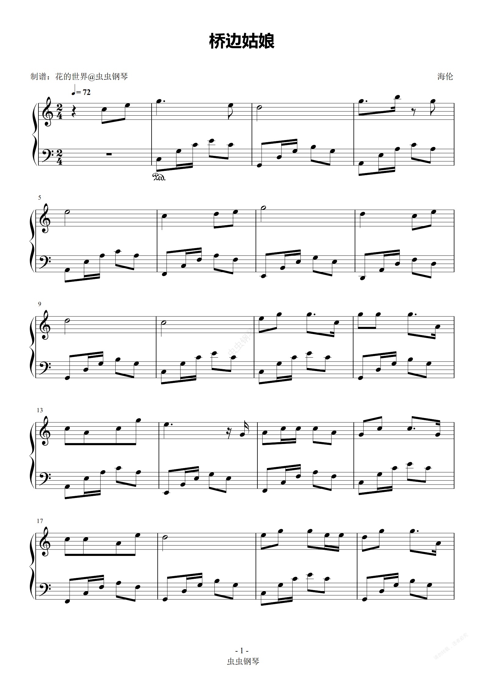 钢琴谱:桥边姑娘 C调简易版本 海伦
