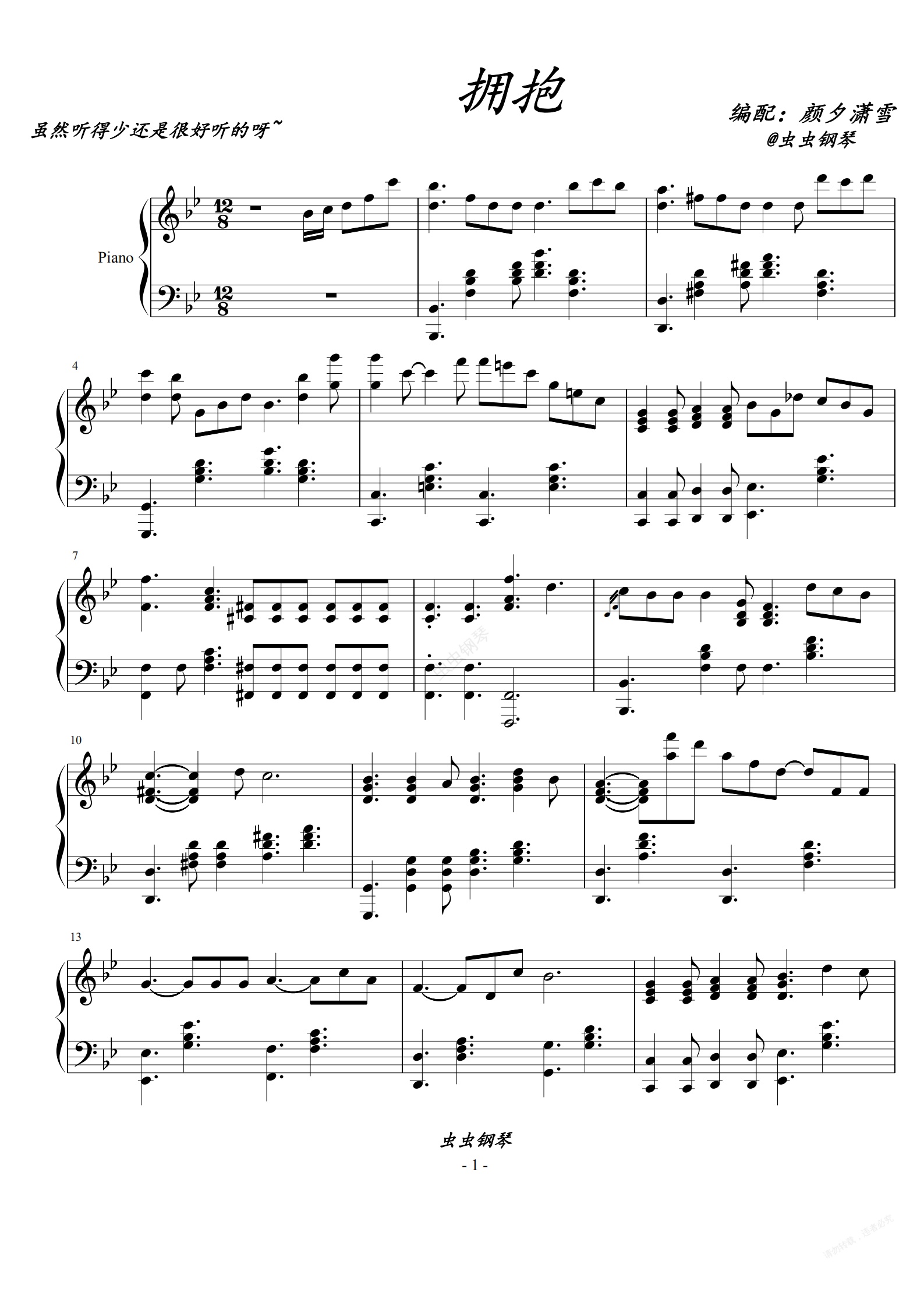 钢琴谱:拥抱【甘仕良版本】