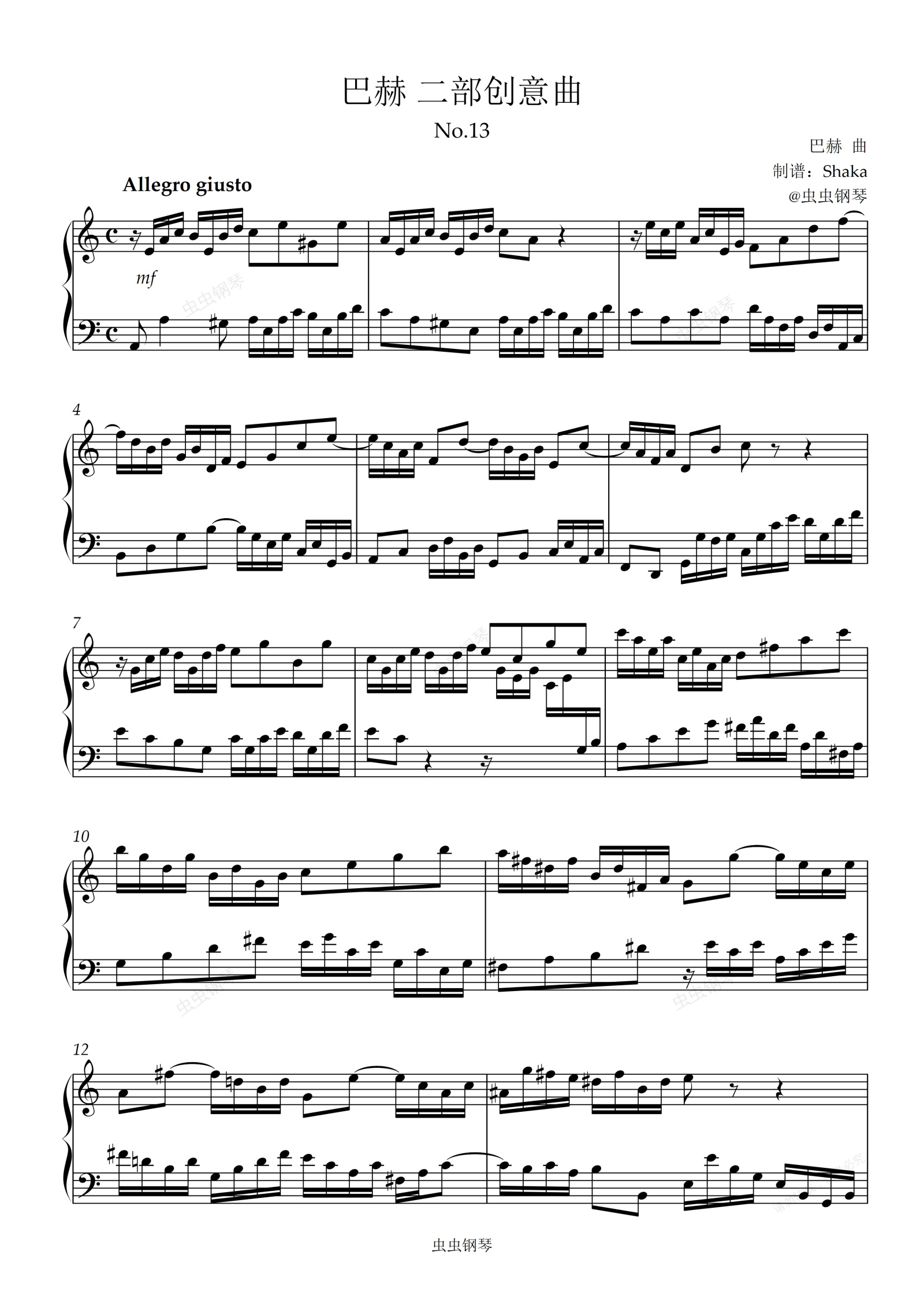 钢琴谱:巴赫 二部创意曲 No.13 上海音乐学院6级考级曲目