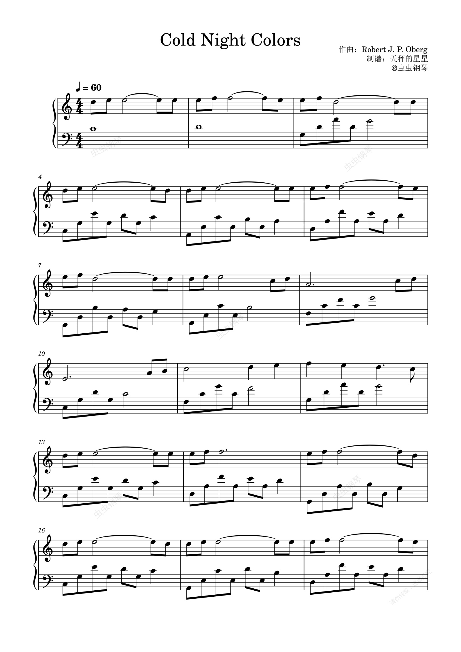 钢琴谱:Cold Night Colors--Robert J. P. Oberg