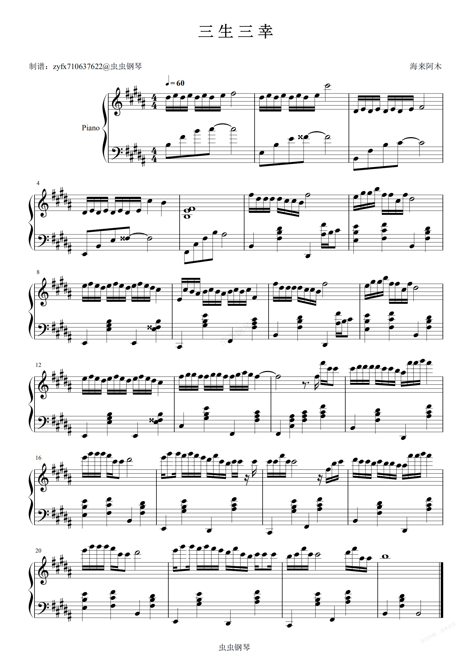 钢琴谱:三生三幸极简独奏版(也可适用于有旋律伴奏)