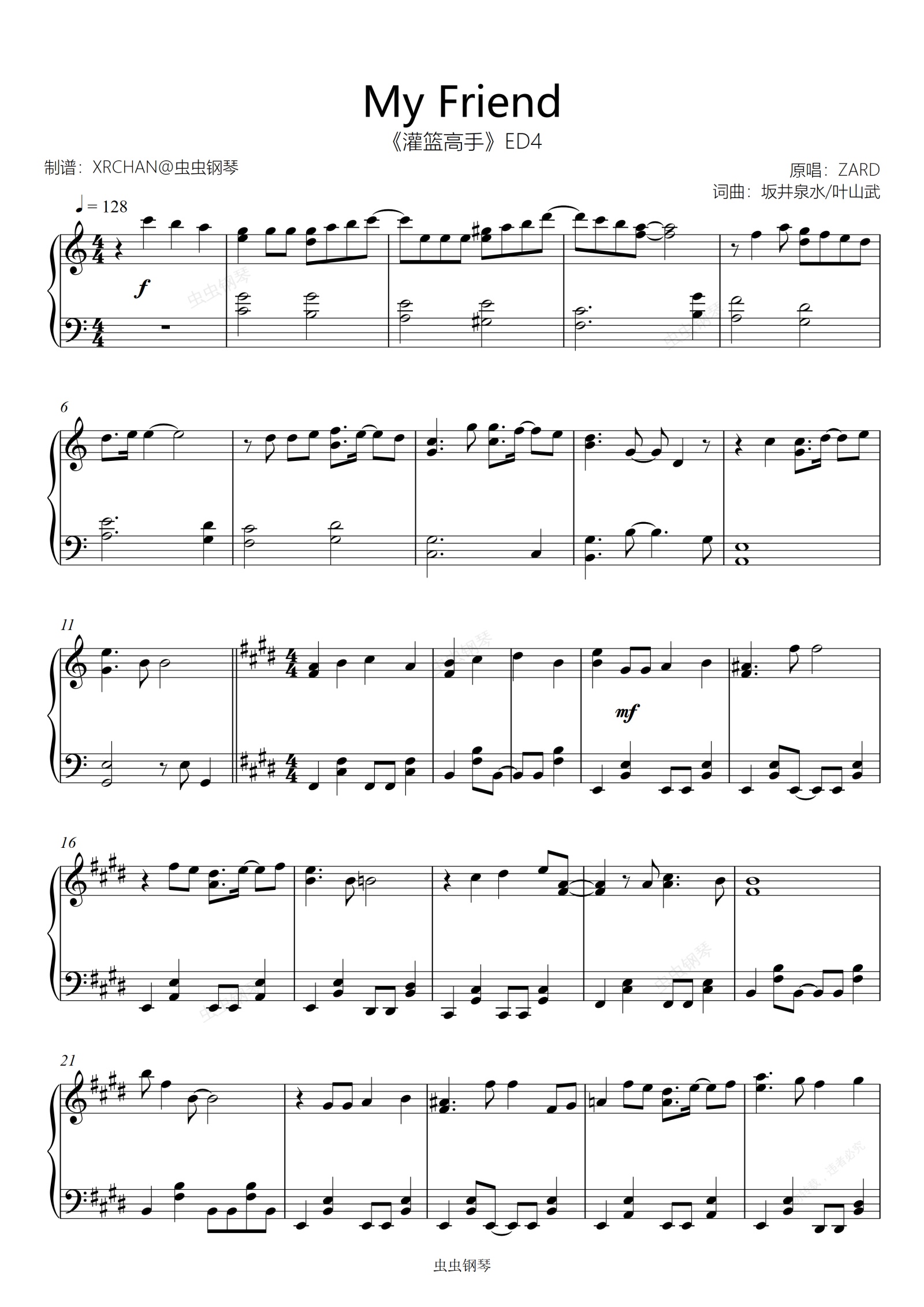 钢琴谱:《灌篮高手》ED4 「My Friend」 坂井泉水 ZARD 初级版