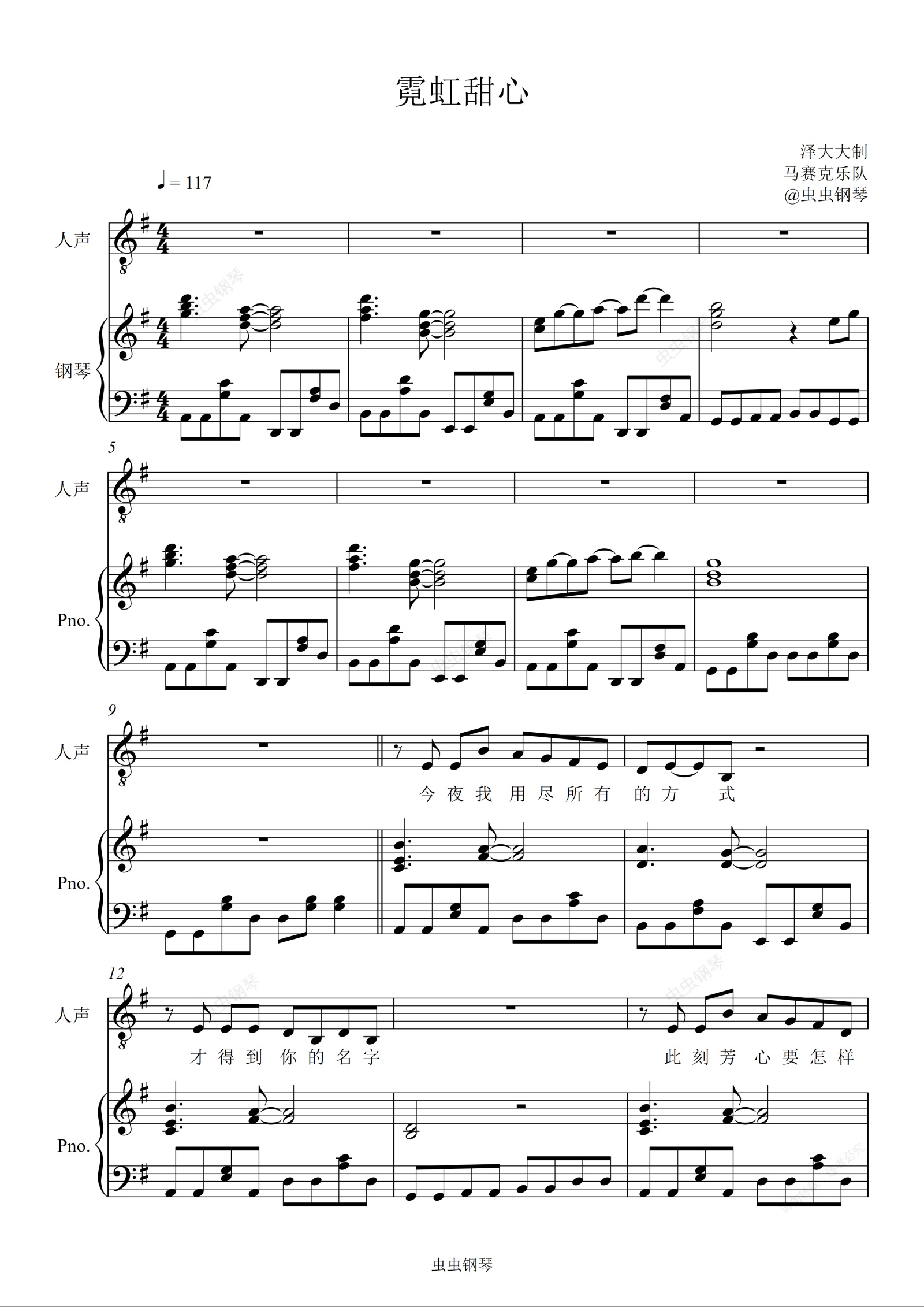 钢琴谱:霓虹甜心【原版弹唱附词】泽大大 马赛克乐队